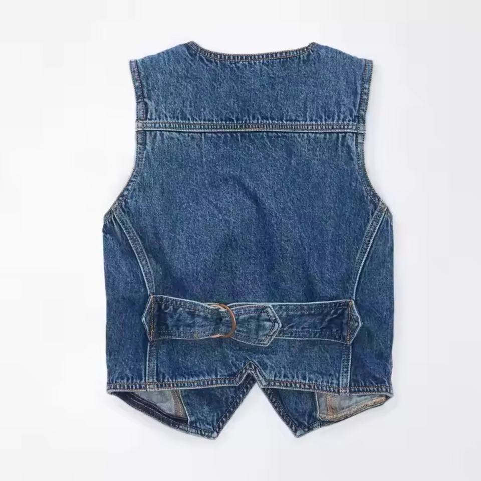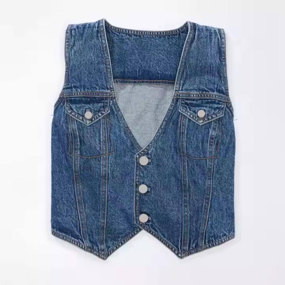 Nouvelle veste pour femme, design sexy, col en V profond, sans manches, coupe ajustée, 100% coton, denim vintage de haute qualité, veste courte pour femme