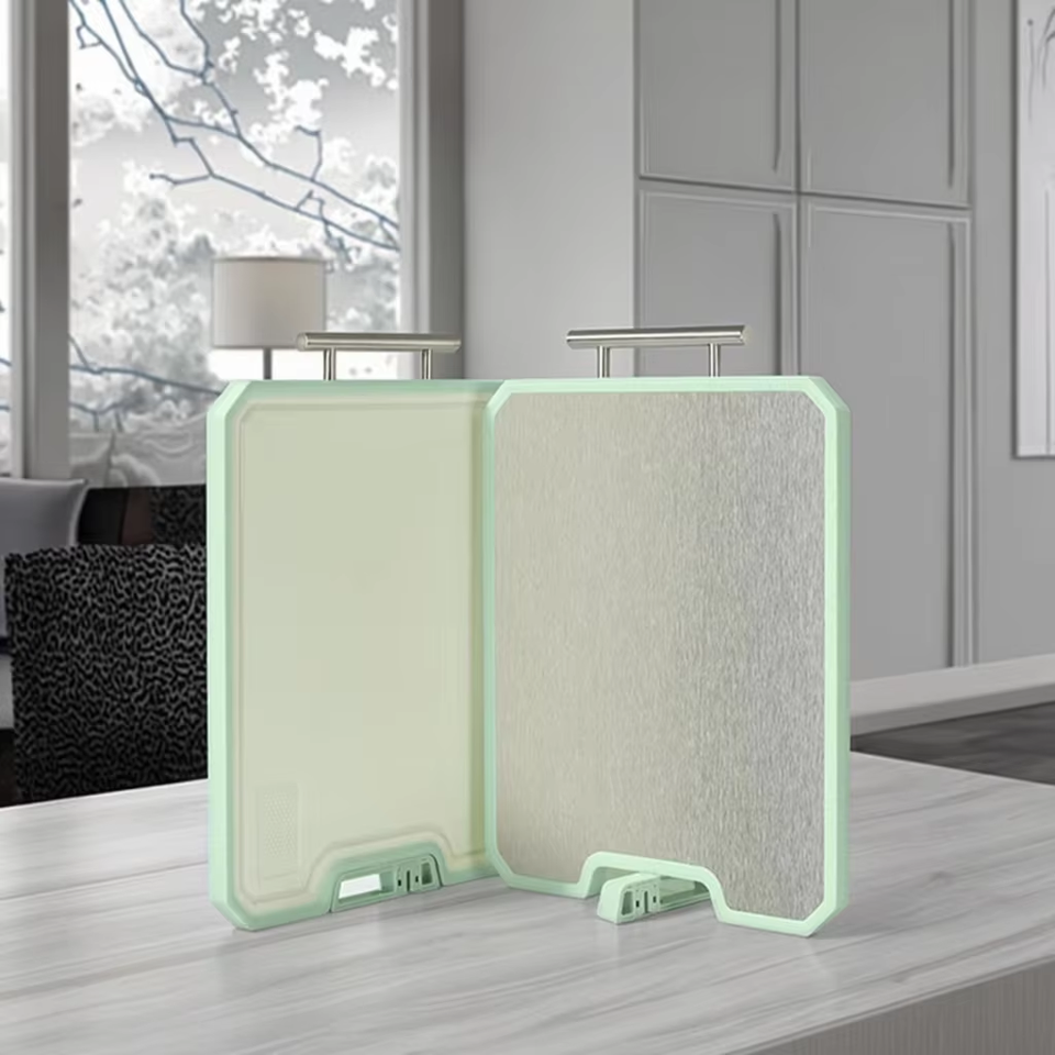 Nouveau design de cuisine en acier inoxydable et paille de blé PP planche à découper bloc à découper double face avec poignée pour la cuisine à domicile
