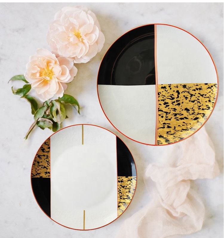 Nouveau design d'ustensiles de cuisine, assiette en porcelaine, vente en gros d'assiettes de présentation en porcelaine, ensembles d'assiettes en céramique pour mariage