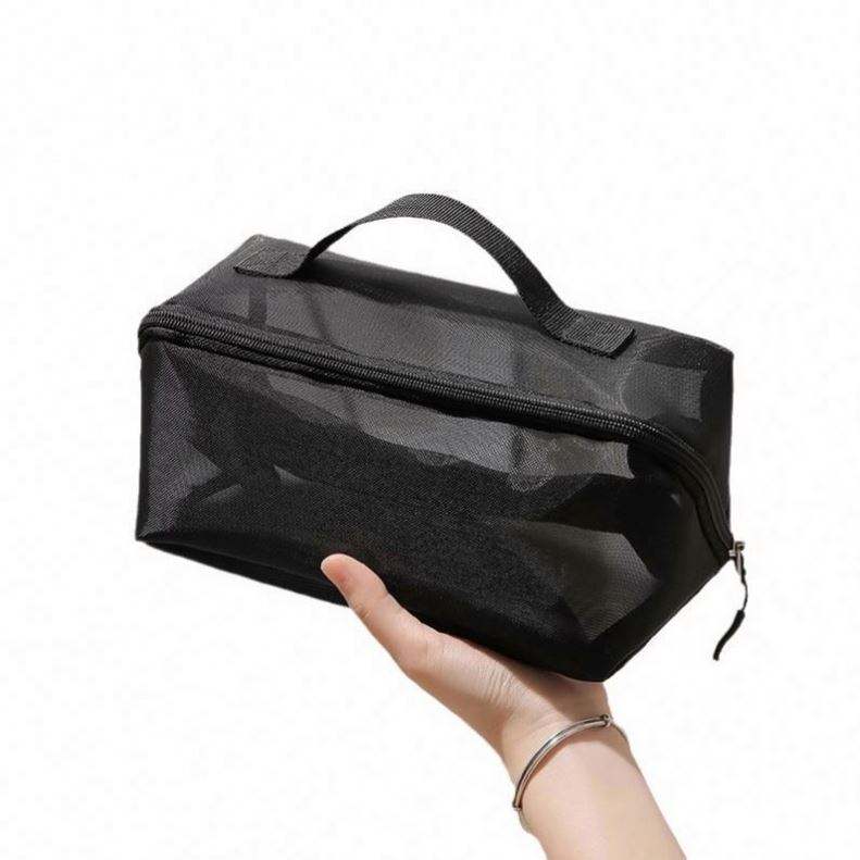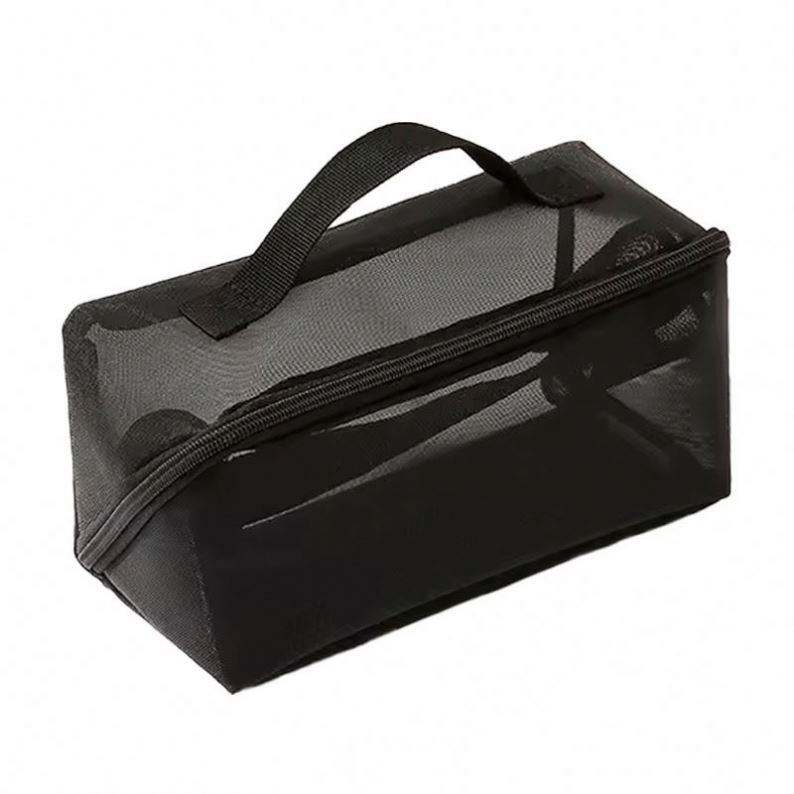 Nouvelle conception, grande capacité, trousse de toilette en maille transparente, sac de maquillage carré pour voyage en plein air