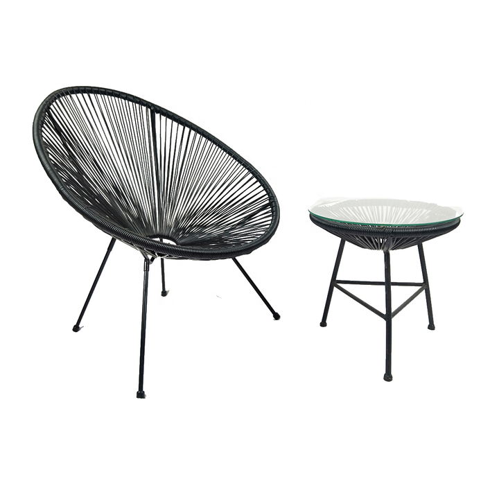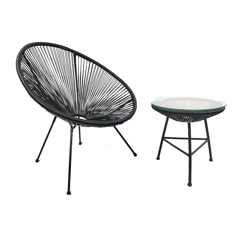 Nouvelle conception de salon de jardin en rotin Acapulco 3 pièces et chaise en rotin Acapulco avec table en verre