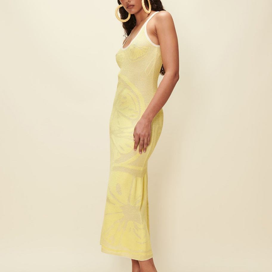 Nouvelle robe en tricot à imprimé citron, robe élégante décontractée pour femmes, robe moulante