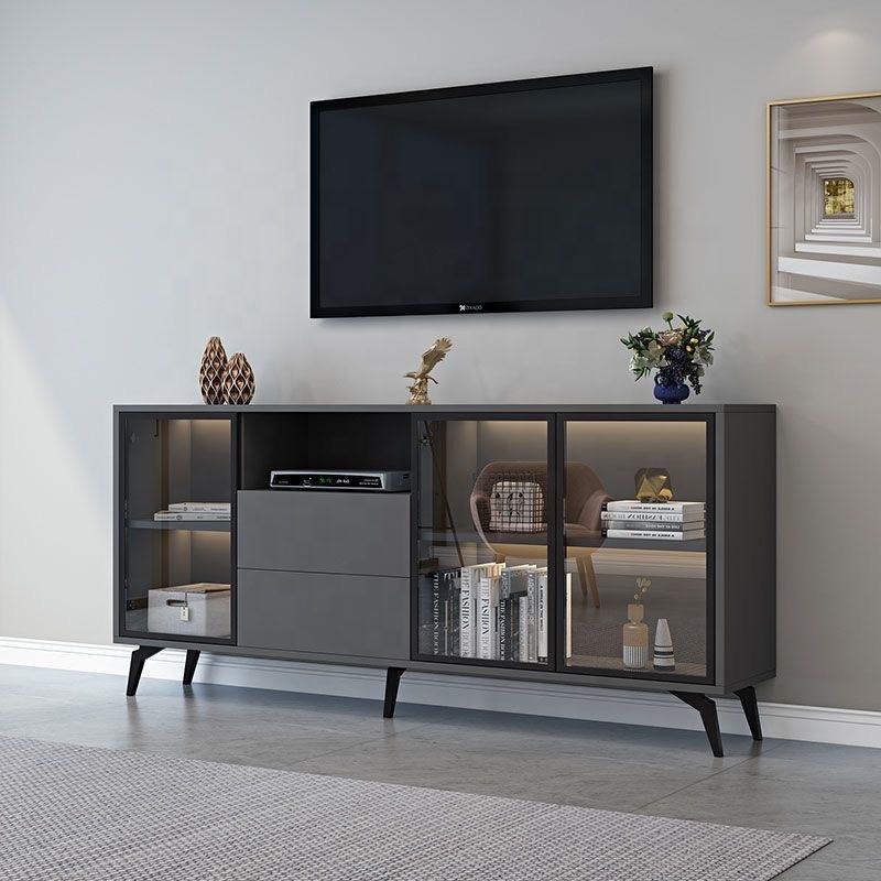 New Design Living Room Modern Black TV Stand Fireplace TV Cabinet Black Vintage White Wax Wood Floor Cabinet Storage Cabinet