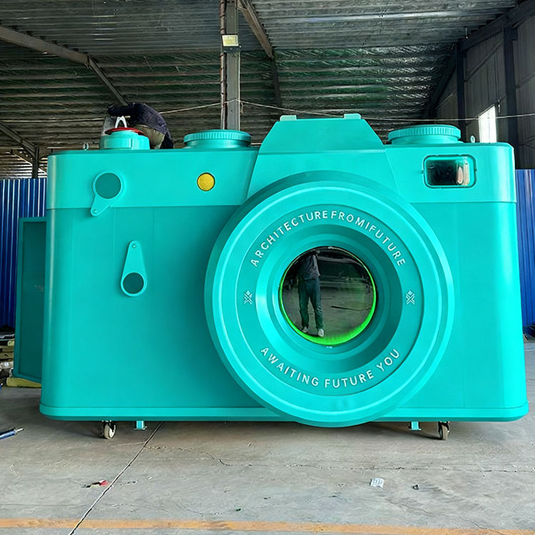 Nouvelle conception, faible coût, maison capsule Luban en forme d'appareil photo, utilisable pour les camions de crème glacée, les camions de nourriture, les camions de café mobiles