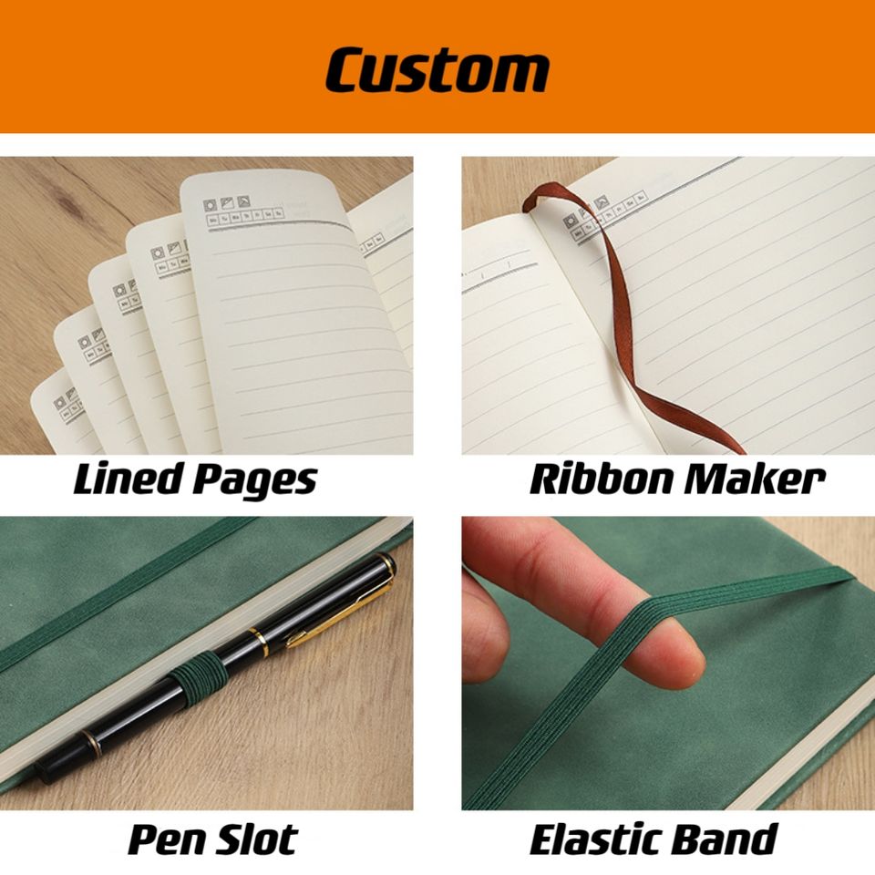 Nouveau design bas quantité minimale de commande moins cher personnalisé PU cuir Journal fabricants sangle élastique A4 cahier 200 feuilles pour cadeau