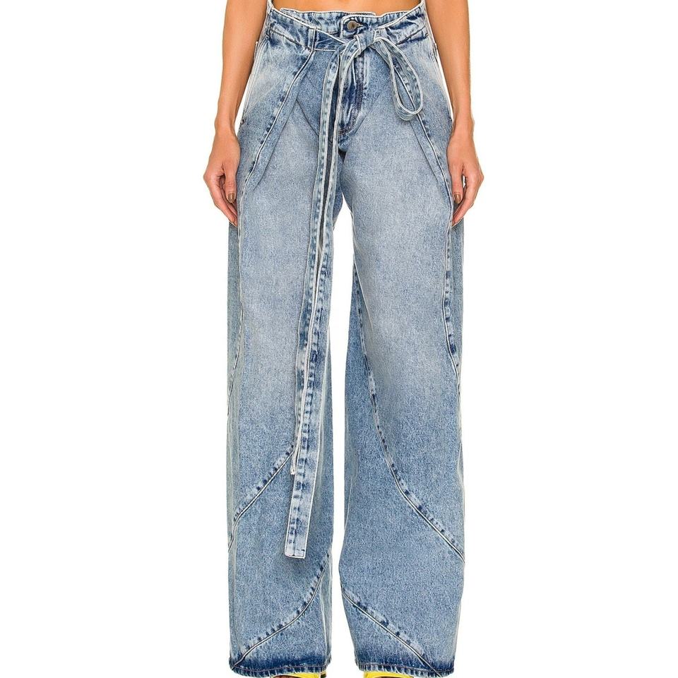 Nouveau design, prix bas, jeans à jambes larges pour femmes, style streetwear hip-hop, 100% coton, délavé à l'acide, effet usé, OOTD, cargo, baggy, en denim