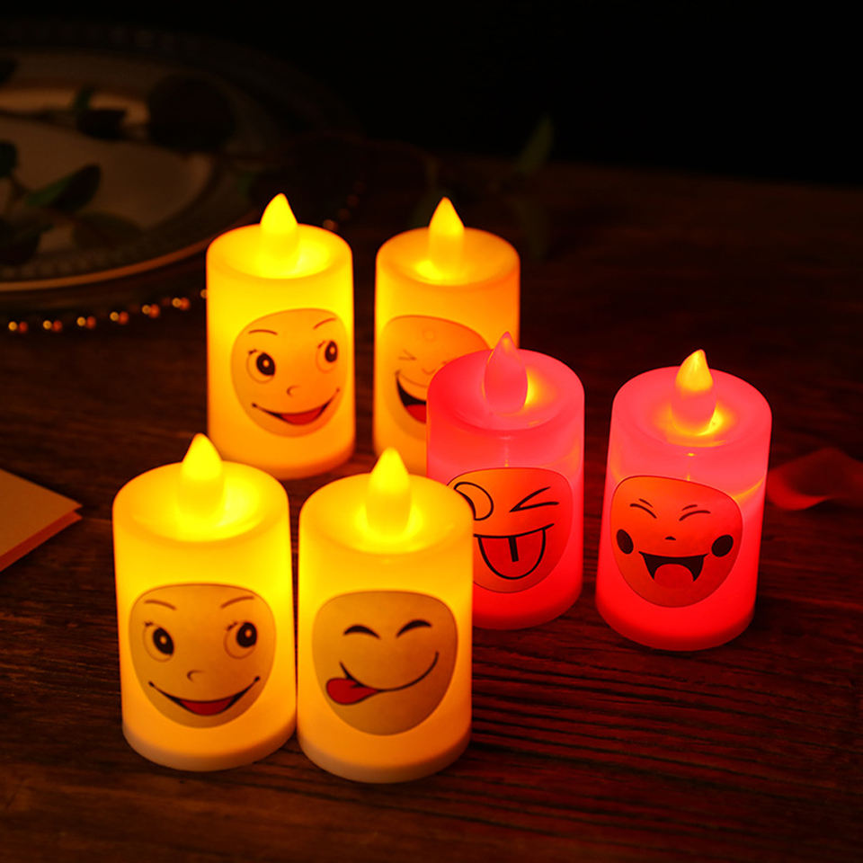 Nouveau design lumineux visage souriant en plastique bougie lumière vacances décoration décoration de la maison