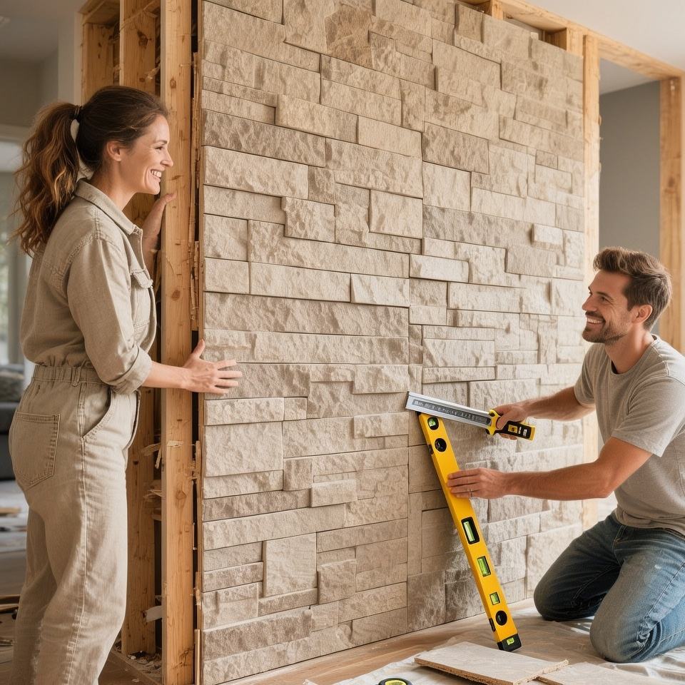 Nouveau design MCM, panneau mural flexible en pierre souple, ignifuge, texture béton, pierre PU pour fond de télévision intérieur