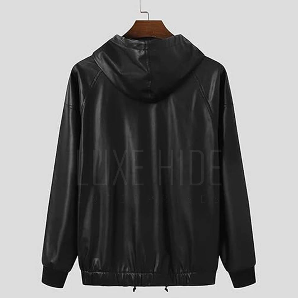 Veste en cuir à capuche