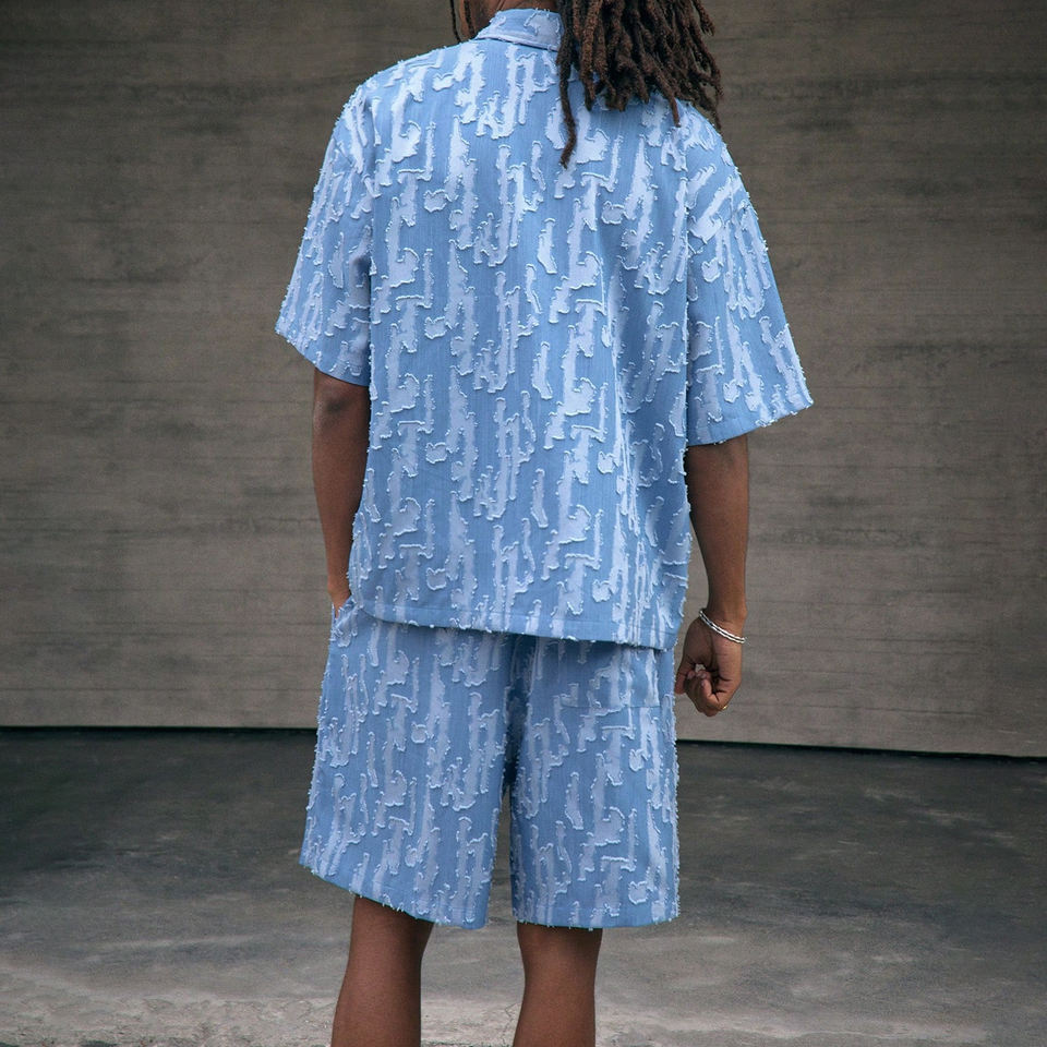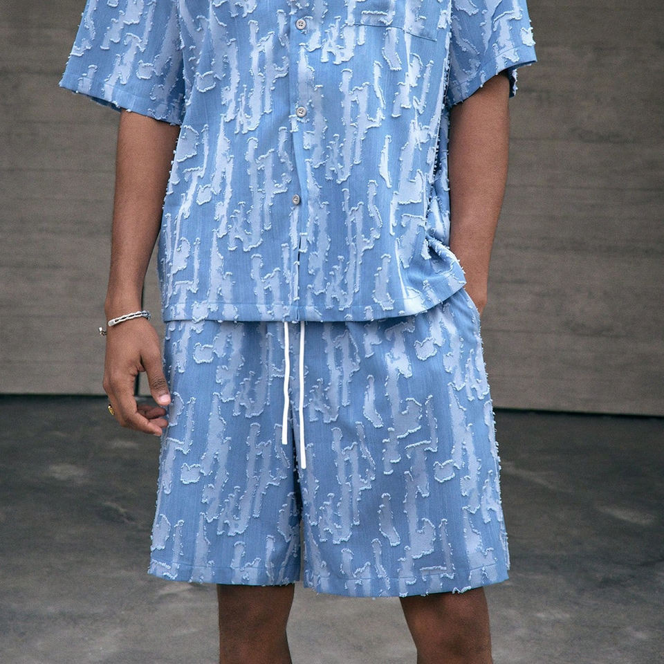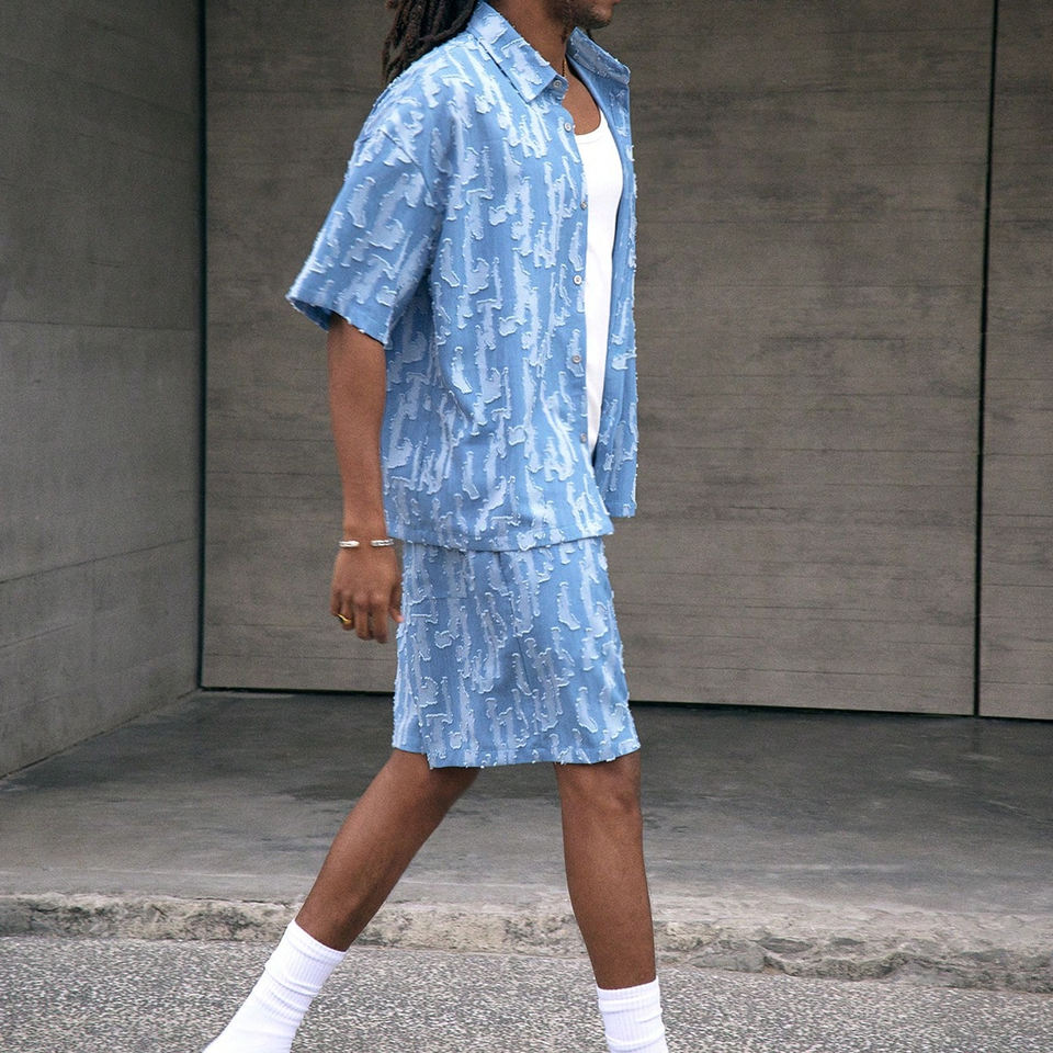 Nouvel ensemble de shorts pour hommes, design imprimé texture denim, tenue décontractée, ensemble de shorts pour hommes, tenue d'été, ensemble de shorts pour hommes en gros