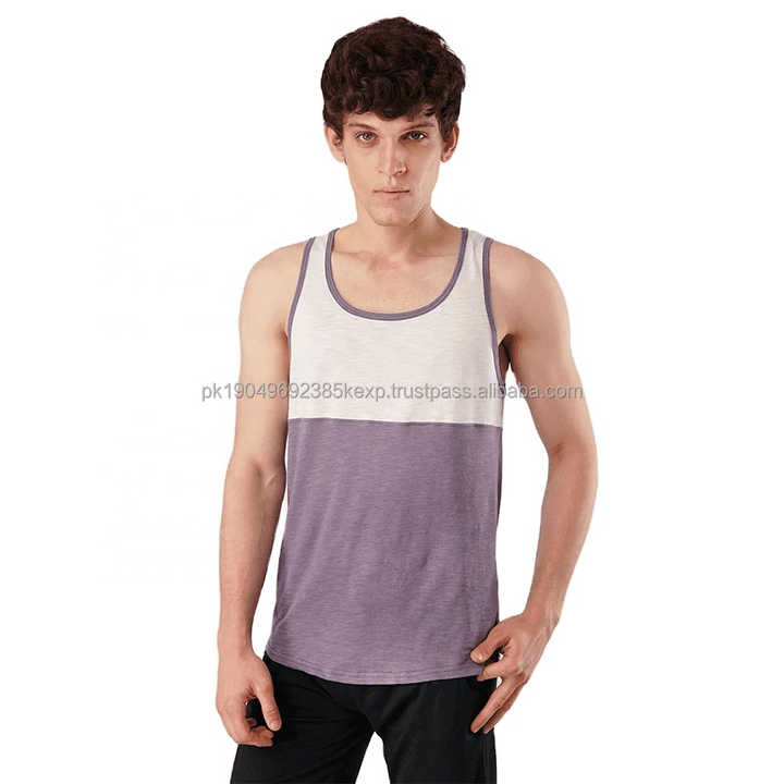 Nouveau design minimaliste, débardeur colorblock pour homme, design bicolore violet clair et foncé, débardeur pour homme parfait pour le streetwear quotidien