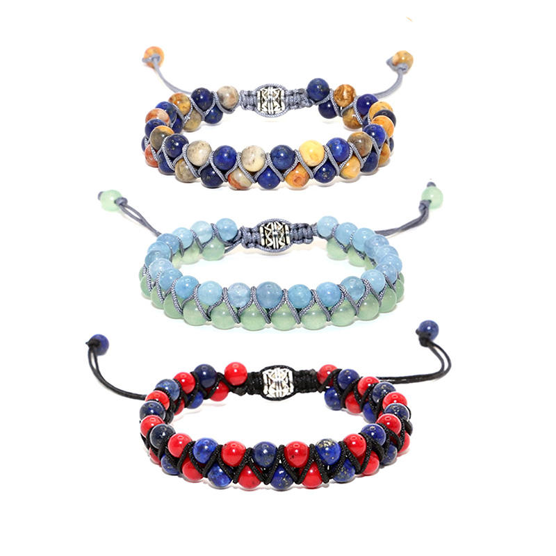 Realme — Bracelet Double couche tressé, bijou fait à la main, couleur mixte pierre naturelle, macramé