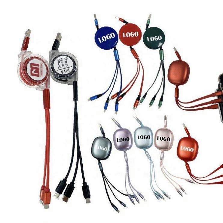Câble de charge USB Type C 3-en-1 réglable et robuste, nouveau design, en plastique, pour téléphone portable