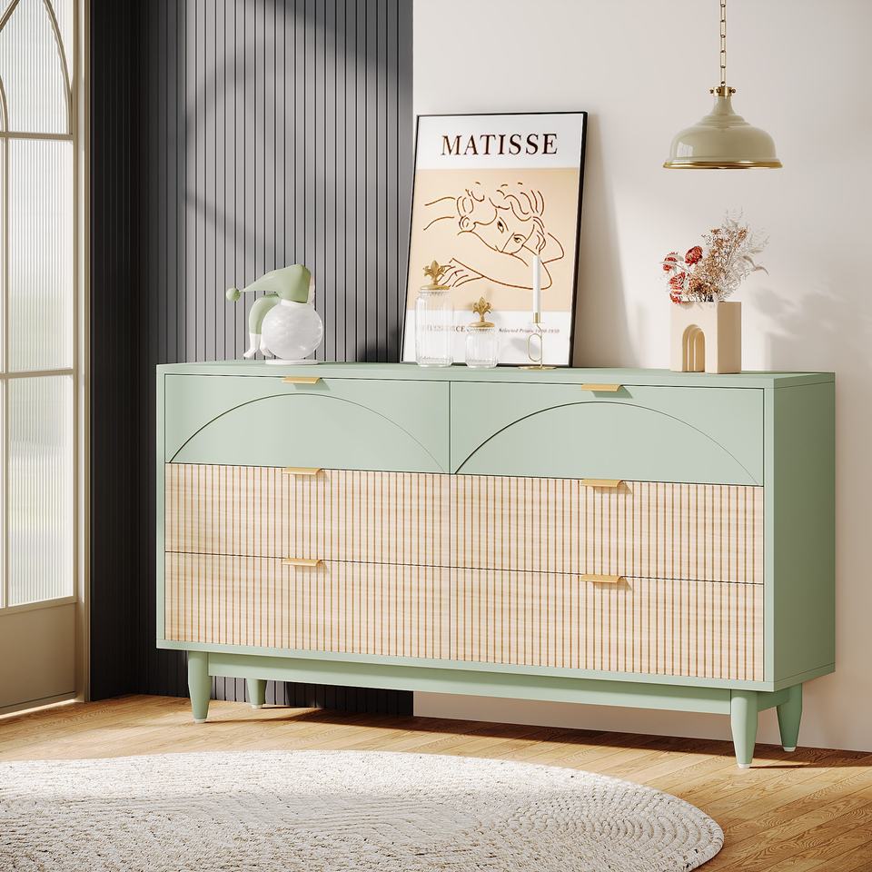 Nouvelle conception moderne de placard de rangement de luxe, armoire en bois vert à 6 tiroirs, coiffeuse avec panneau en MDF, utilisation dans le salon