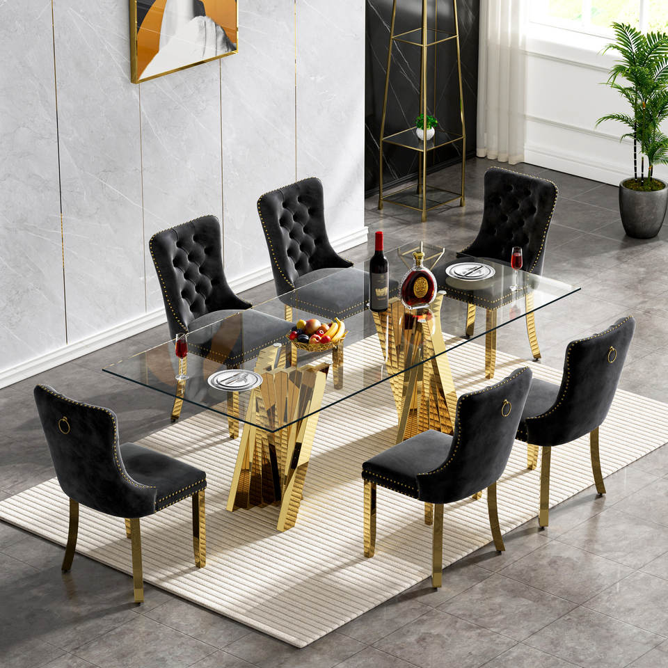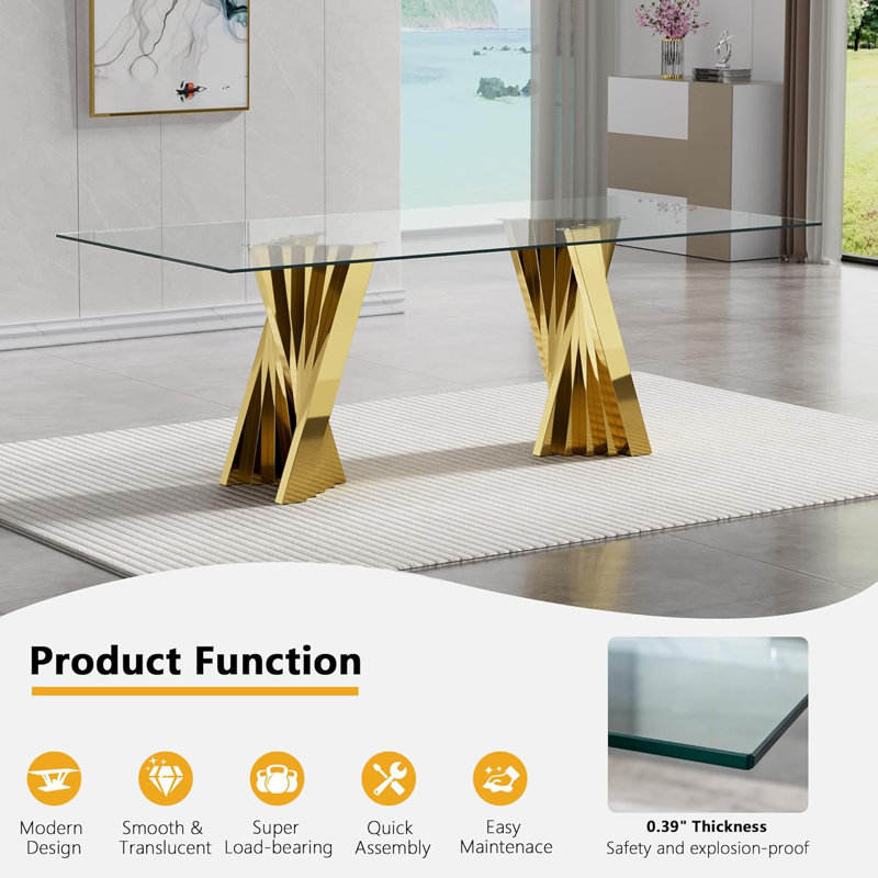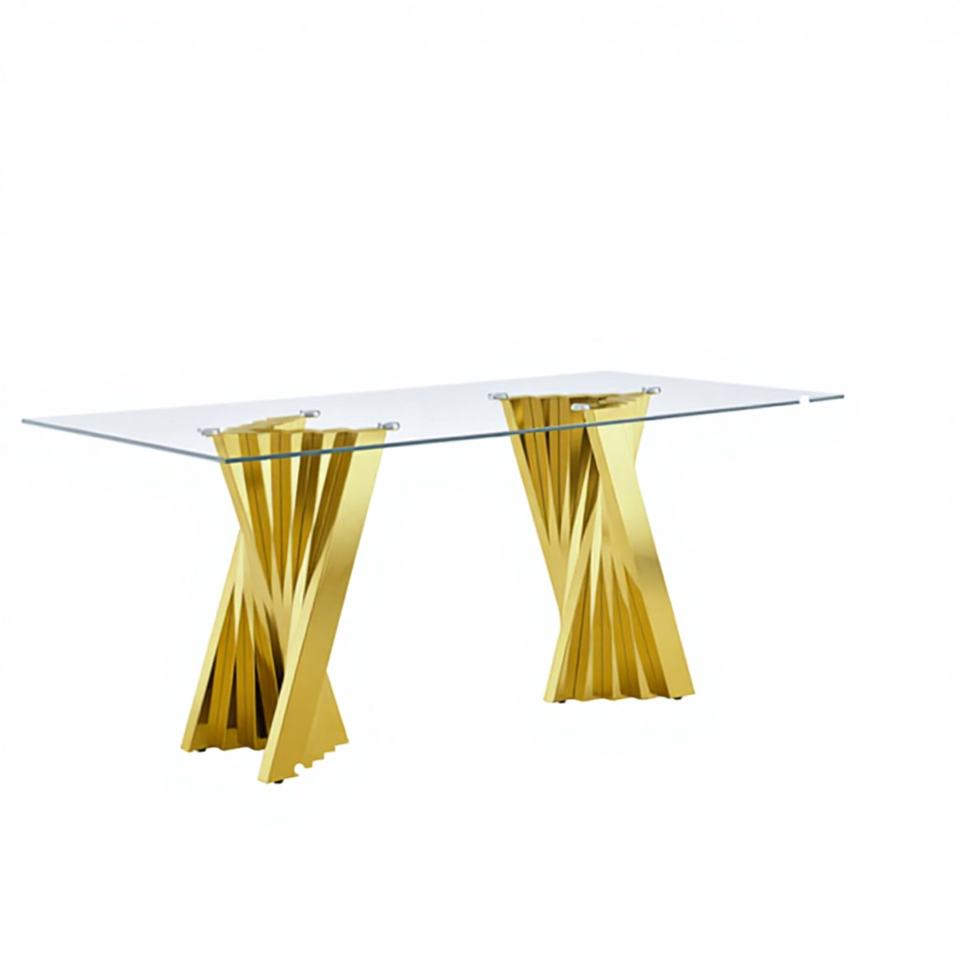 Nouvelle table de dîner rectangulaire en acier inoxydable doré au design moderne pour la maison, l'hôtel et l'appartement