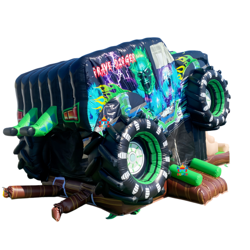 Nouvelle conception de château gonflable Monster Truck avec toboggan, qualité commerciale, pour les fêtes d'enfants, les événements en plein air, location de châteaux gonflables