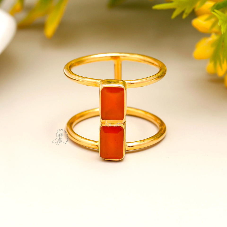 Nouveau Design Naturel Semi-Précieuse Pierre Solide 925 Bijoux En Argent Sterling Fine Jewelry Anneaux Rectangle Cornaline Pierre
