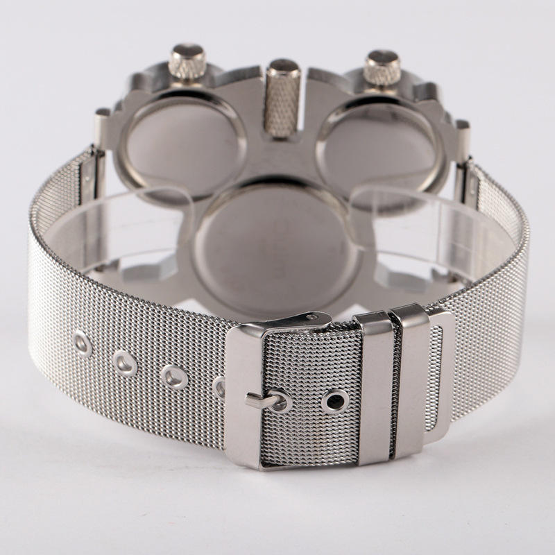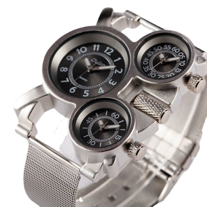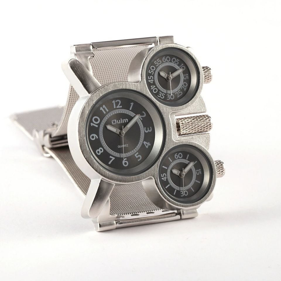 New Design Oulm 1167 Watch Big Head 3 Time Zone Japanese Movement Sports Quartz Clock Silver Luxury Men Stainless Steel Watch