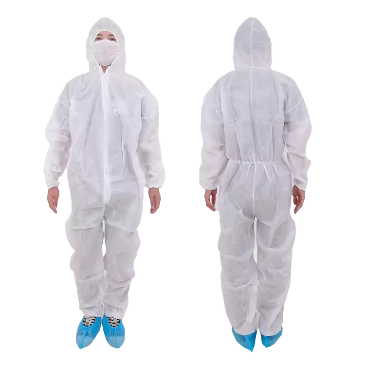 Combinaison jetable en fibre de verre, nouvelle conception, blanche, en PP non tissé, vêtements de sécurité jetables avec une réduction avantageuse