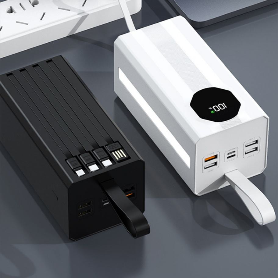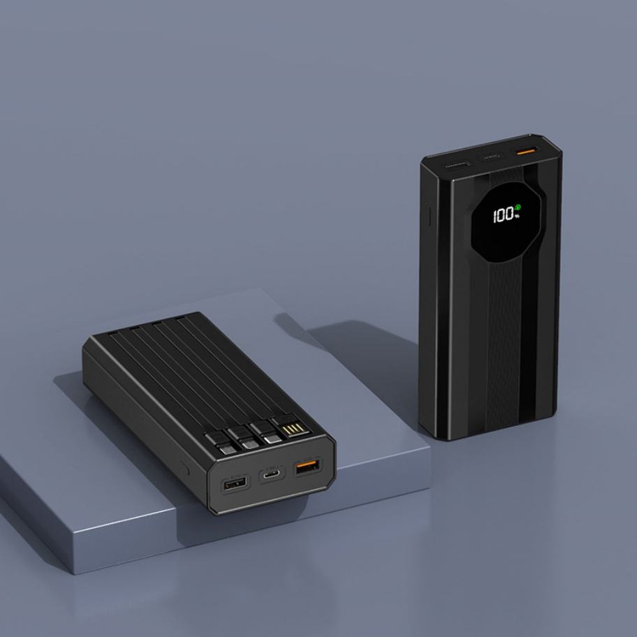 Nouvelle conception, charge super rapide PD22.5W, batterie externe 30000mah 50000mah avec écran LED, câbles Type-C et lampe de camping