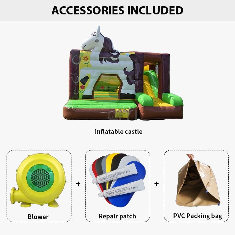 Château gonflable en PVC de nouvelle conception, thème poney brun, avec souffleur