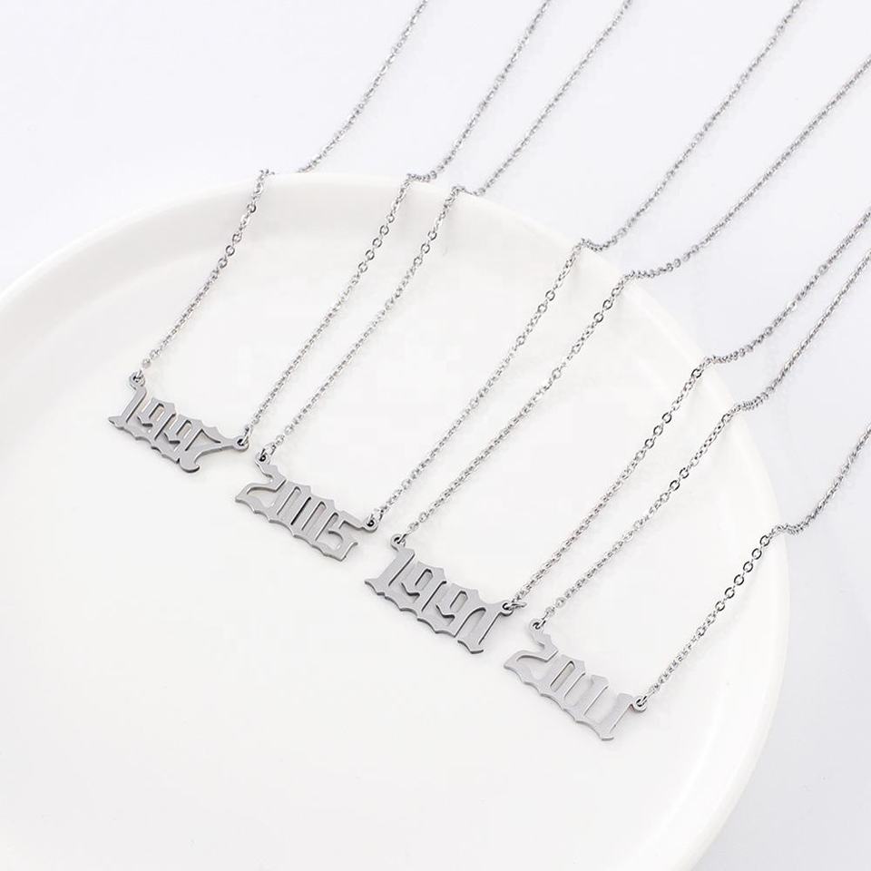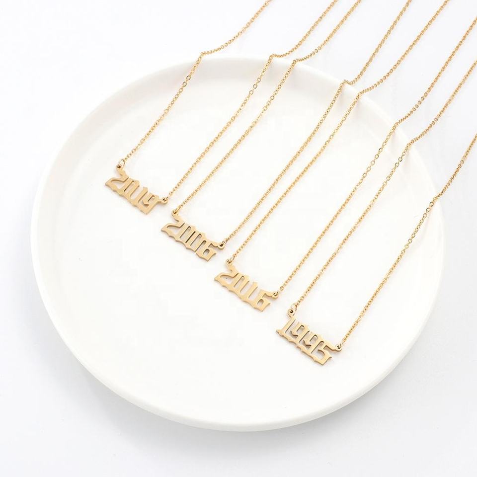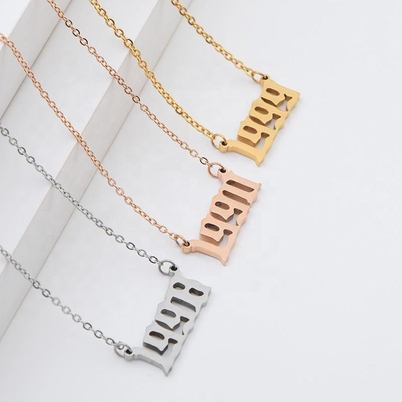 Nouveau design personnalisé numéro personnalisé 1985-2020 acier inoxydable plaqué or 18 carats année de naissance colliers pour femmes