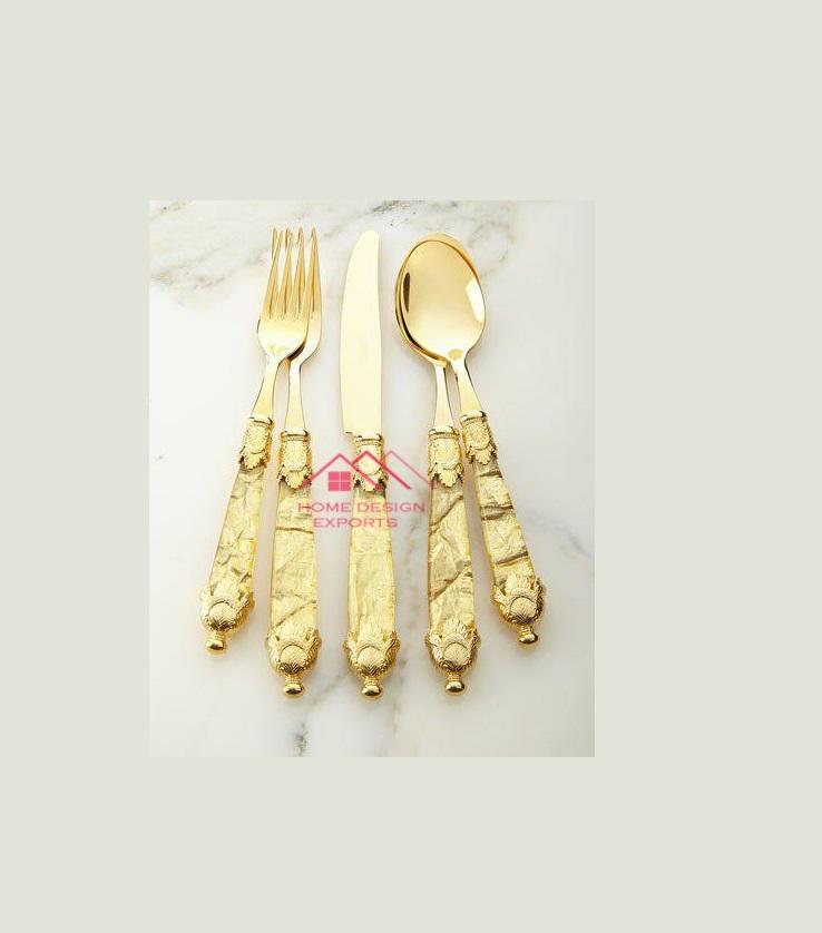 Nouveau Design Ensemble de Couverts Personnalisés en Acier Inoxydable Cuivre Plaqué Argenterie Royal Vintage Mariage Cadeau de Luxe