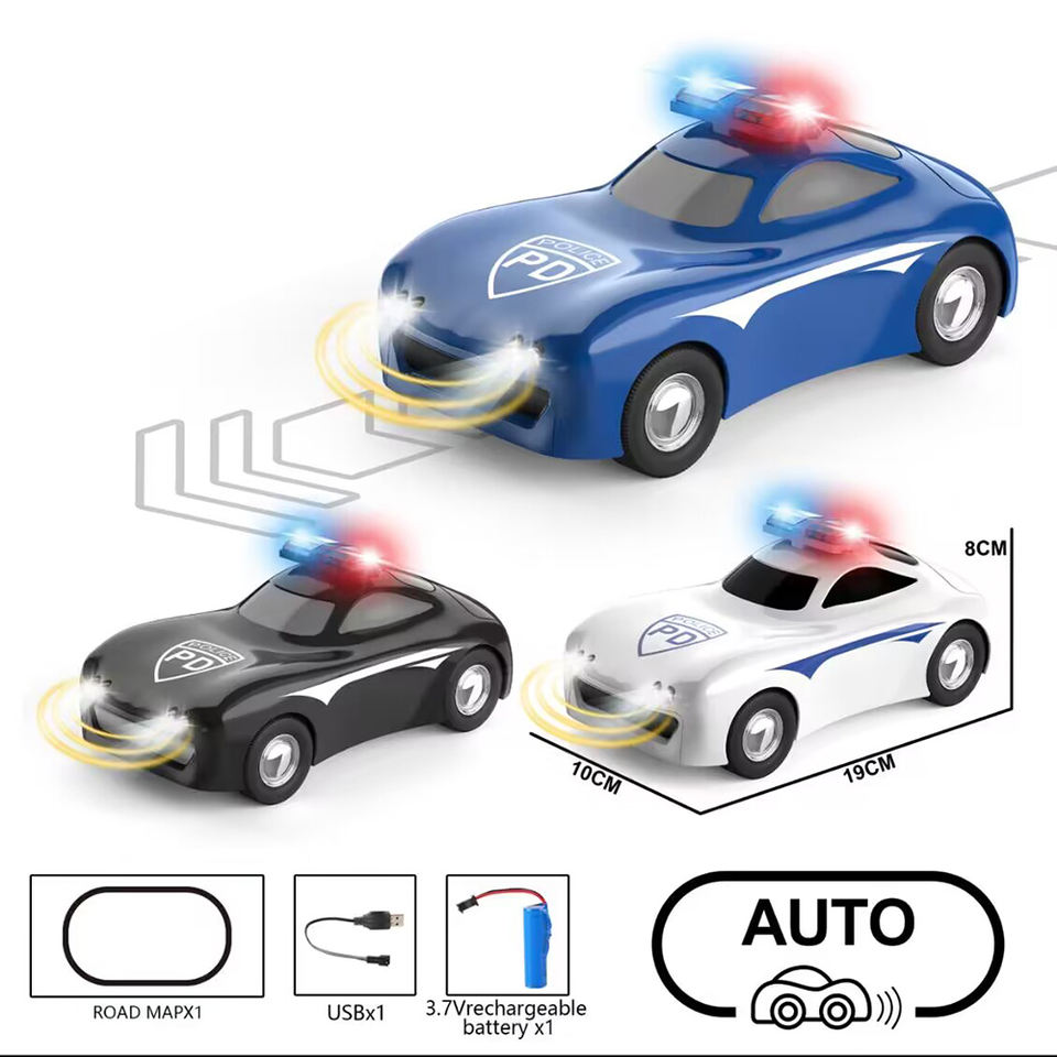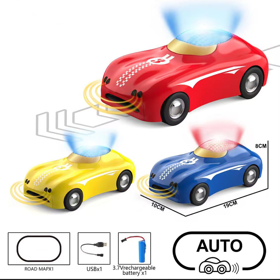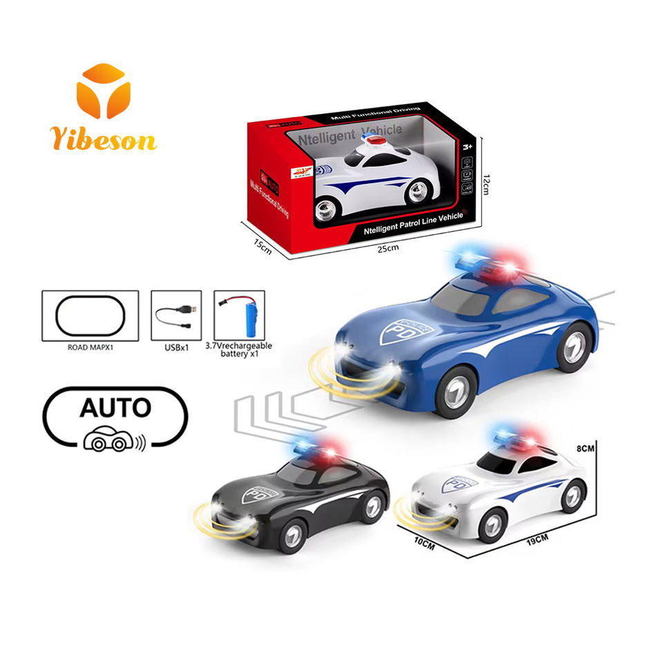 Nouveau design en plastique 3 couleurs enfants conduite intelligente modèle voiture lumière musique intelligente patrouille ligne véhicule jouets