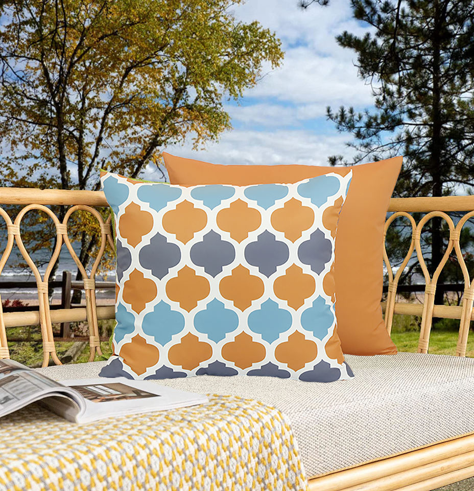 Nouvelle Housse de Coussin d'Extérieur Imperméable Orange et Bleue avec Impression Design Décorative