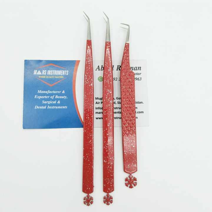 Collection de Noël de haute qualité en acier inoxydable pailleté rouge 45 pince à épiler à 90 degrés pour les cils d'extension et de ventilateur