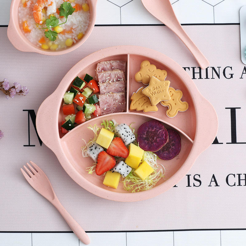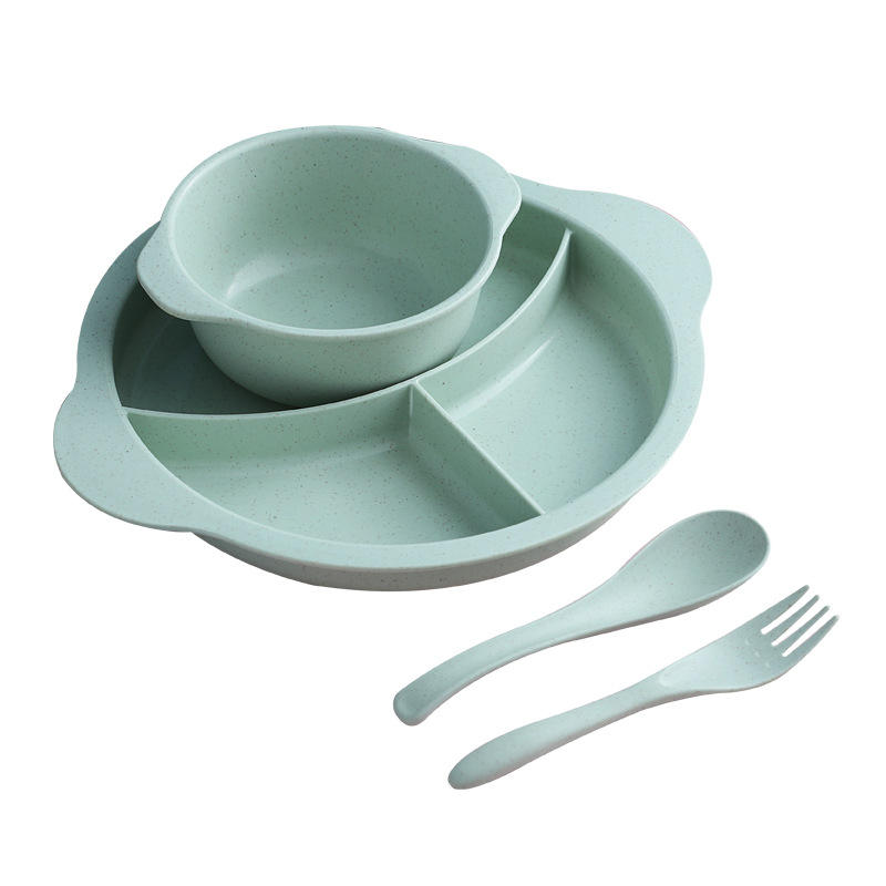 Nouvelle conception Ensemble de vaisselle en plastique de paille de blé réutilisable Vaisselle écologique Assiette en plastique divisée pour dessert