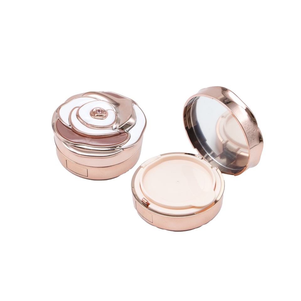 Nouveau design étui à coussin d'air haut fleur rose rond étui à coussin d'air rose pour étui à cosmétiques