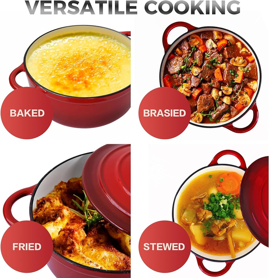 Nouveau Design Ensemble de Plats de Cuisson Ronds en Fonte Émaillée, Marmite Néerlandaise en Fonte Émaillée