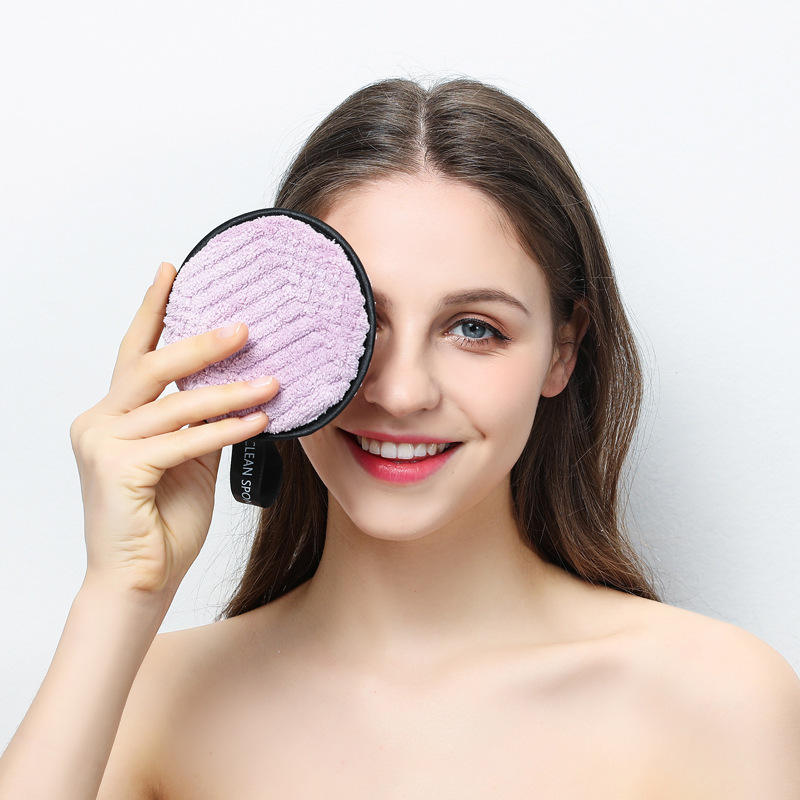 Nouveau design éponge démaquillante ronde shampooing nettoyant visage éponges d'exfoliation tampon rond mitaine tampon démaquillant en microfibre