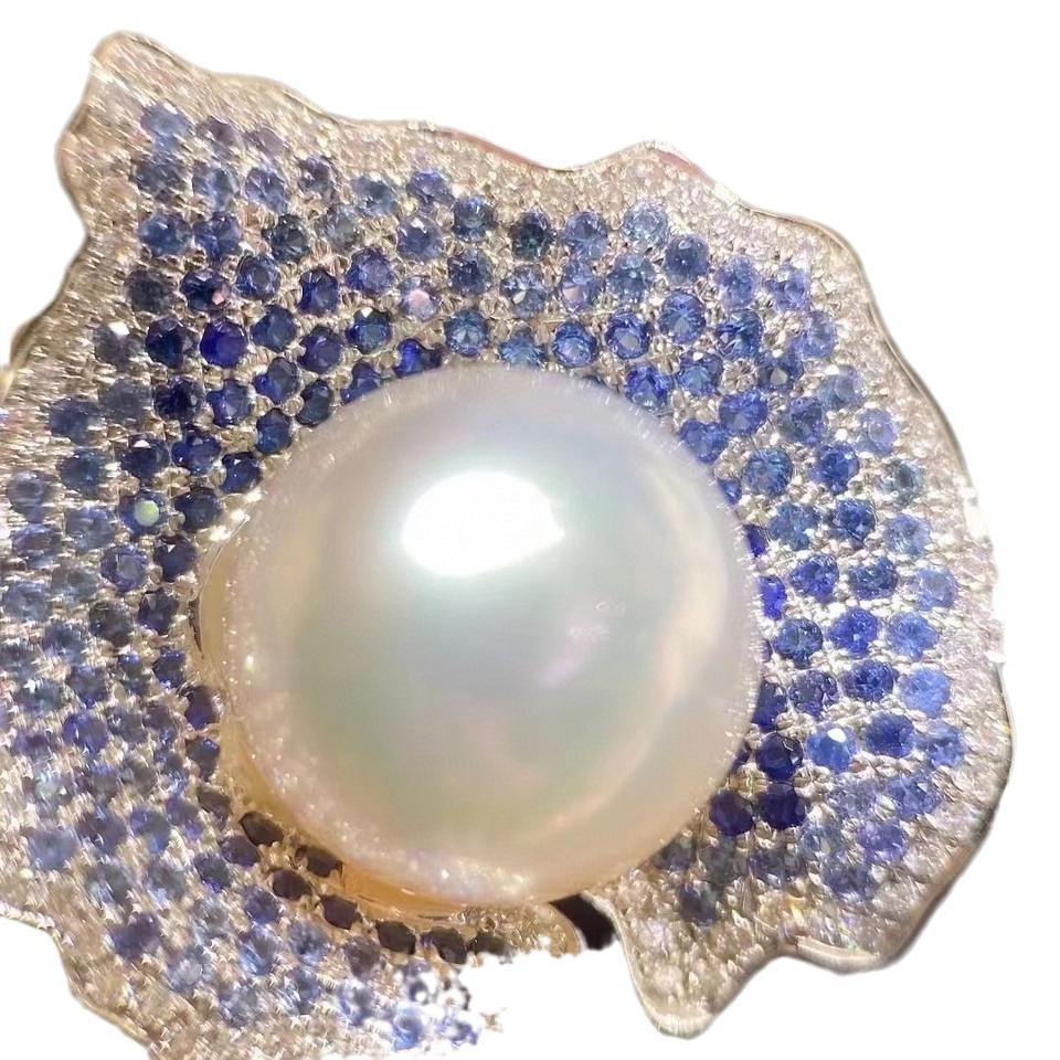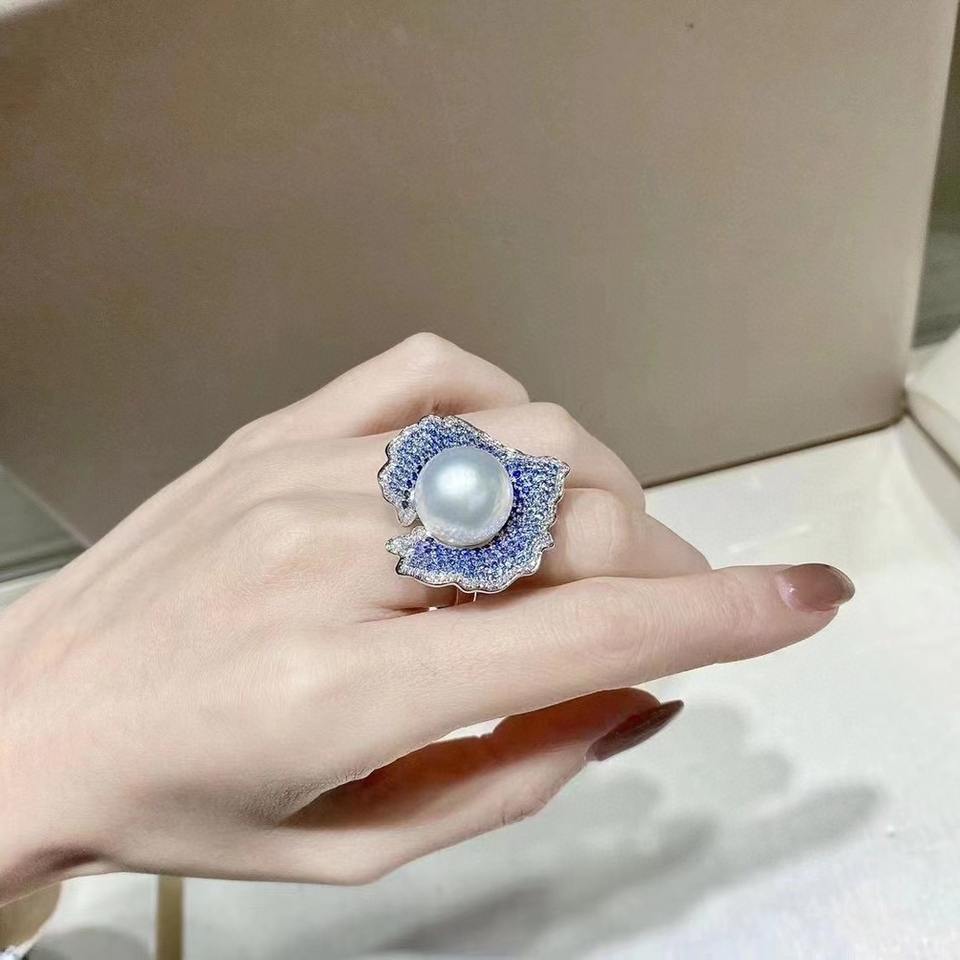 Nouvelle conception, bague en argent pur S925, 10-11 mm, perle naturelle et zircon scintillant, style de mode luxueux, bague réglable de luxe