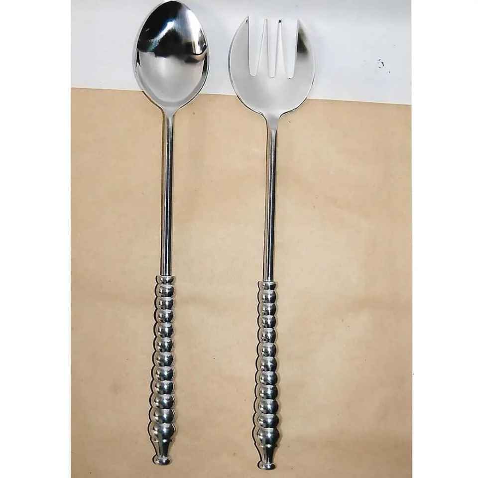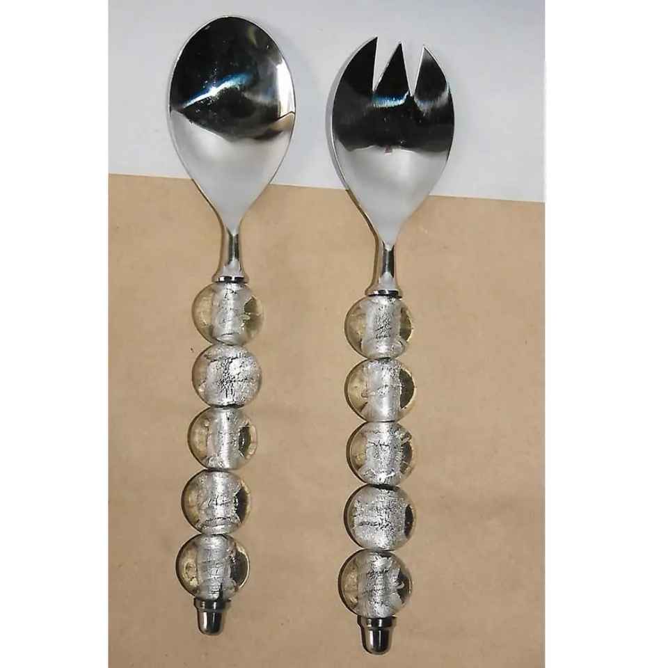 Nouvelle conception de service à salade et cuillère écologiques avec poignée en perles de verre, outils à salade en acier inoxydable, ensemble de couverts, passe au lave-vaisselle