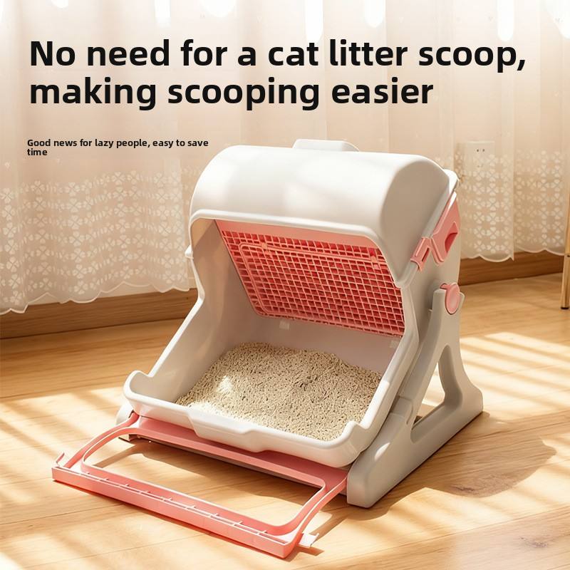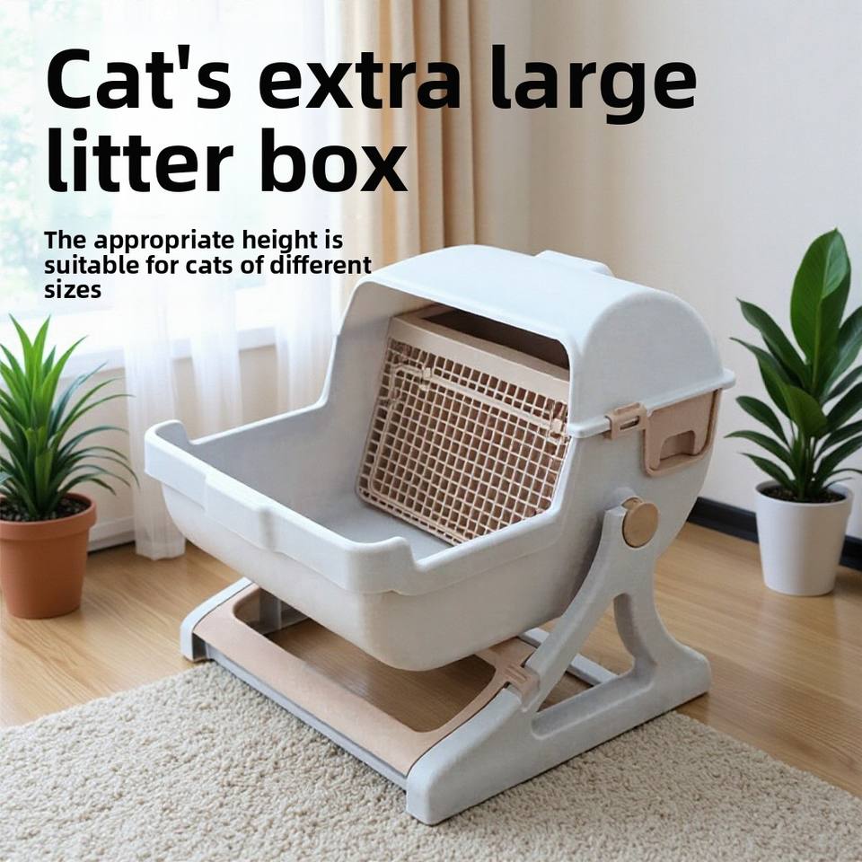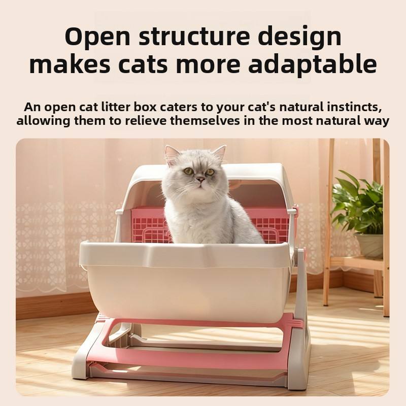 Nouvelle conception, litière pour chat semi-automatique de 80 L, en plastique, écologique, facile à nettoyer, grande taille, design ouvert, vente directe du fabricant