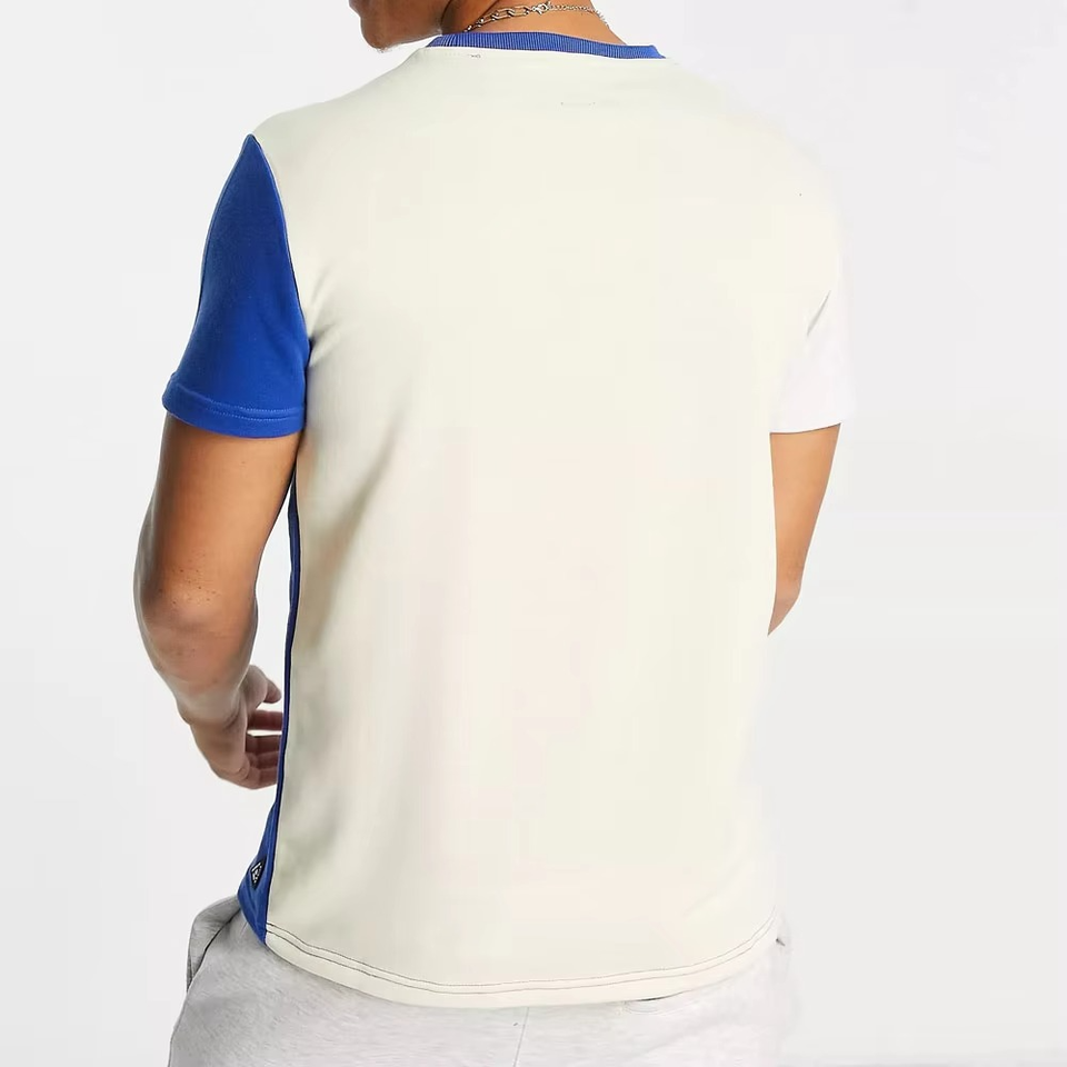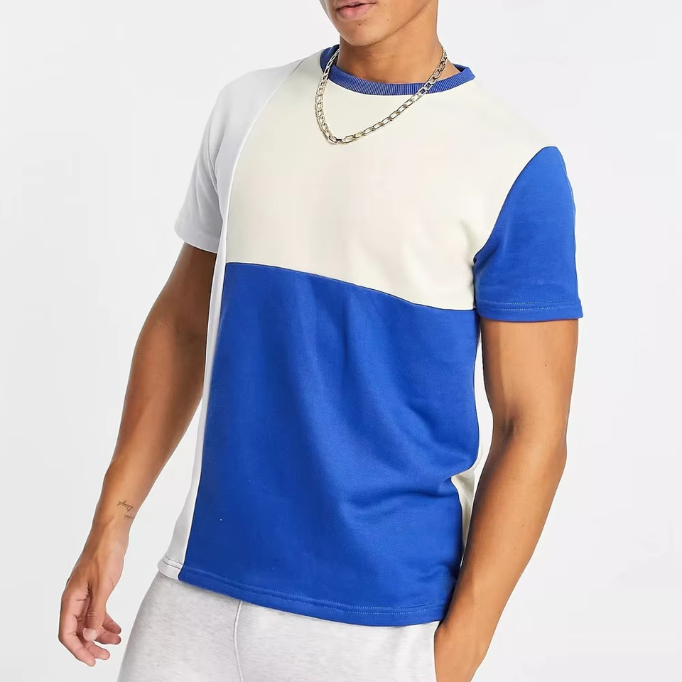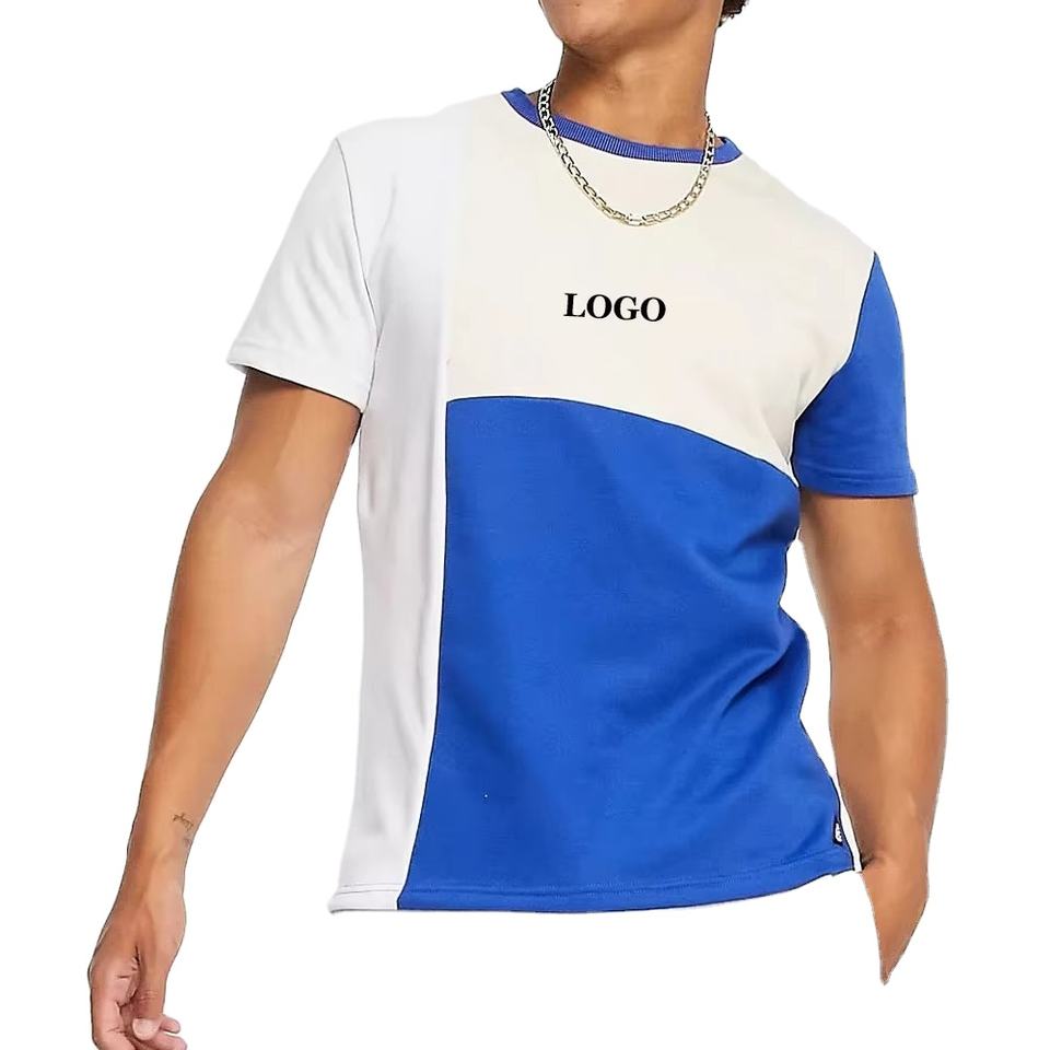 Nouveau design de t-shirt à manches courtes pour homme avec impression de logo personnalisé, tissu respirant, motif bicolore, coupe classique pour l'été