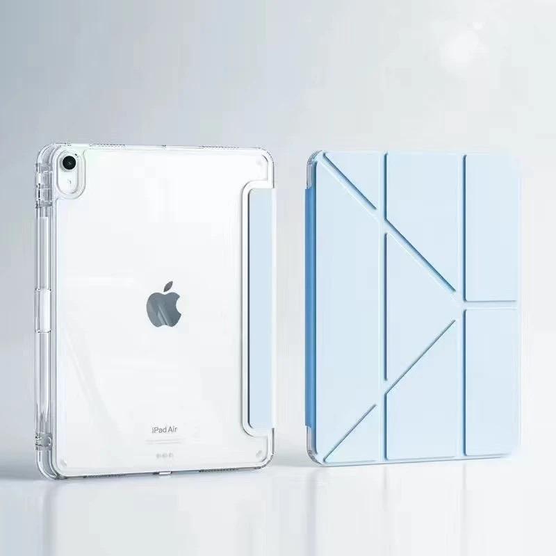 Nouveau Design Silicone TPU + PC Acrylique Panneau Coque Multi Support 3 + Y Transformateur Demi-Pâte PU Étui En Cuir pour iPad
