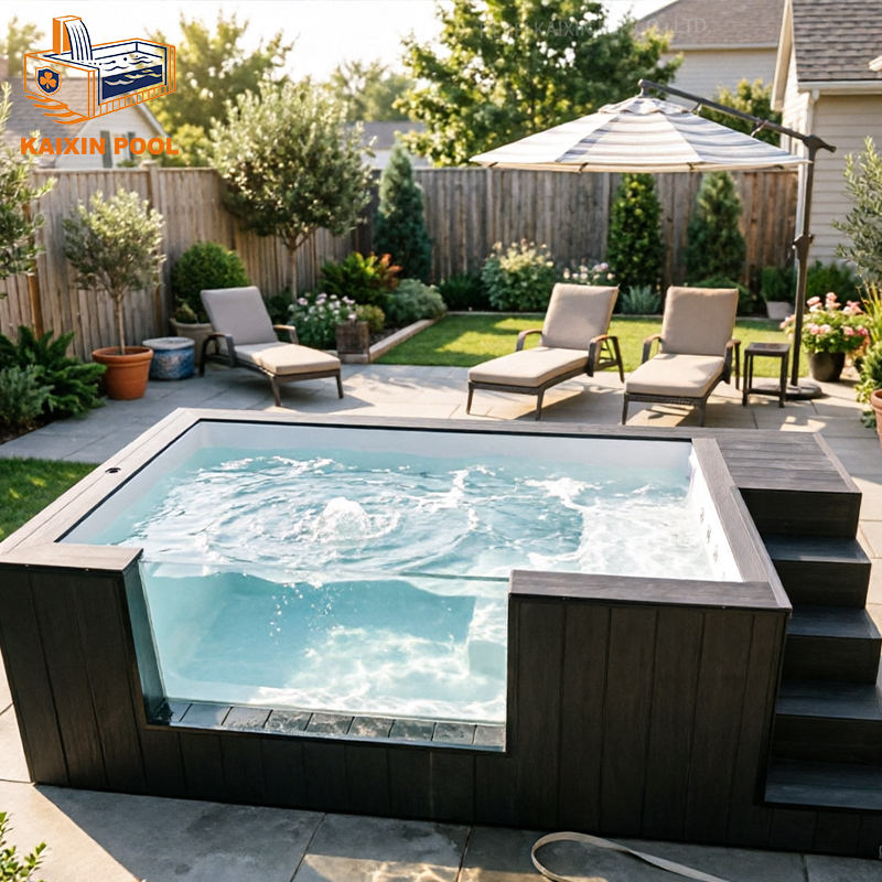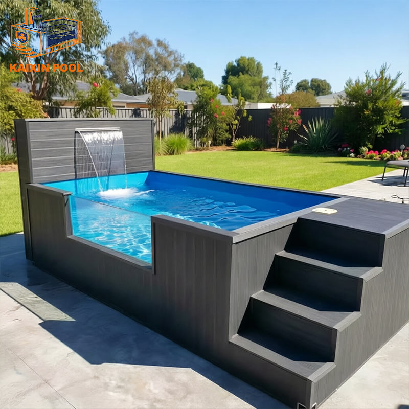 Nouveau design de piscine hors sol de petite taille étapes pompe à chauffage fenêtre en verre 20 pieds 40 pieds conteneur piscines pour adultes