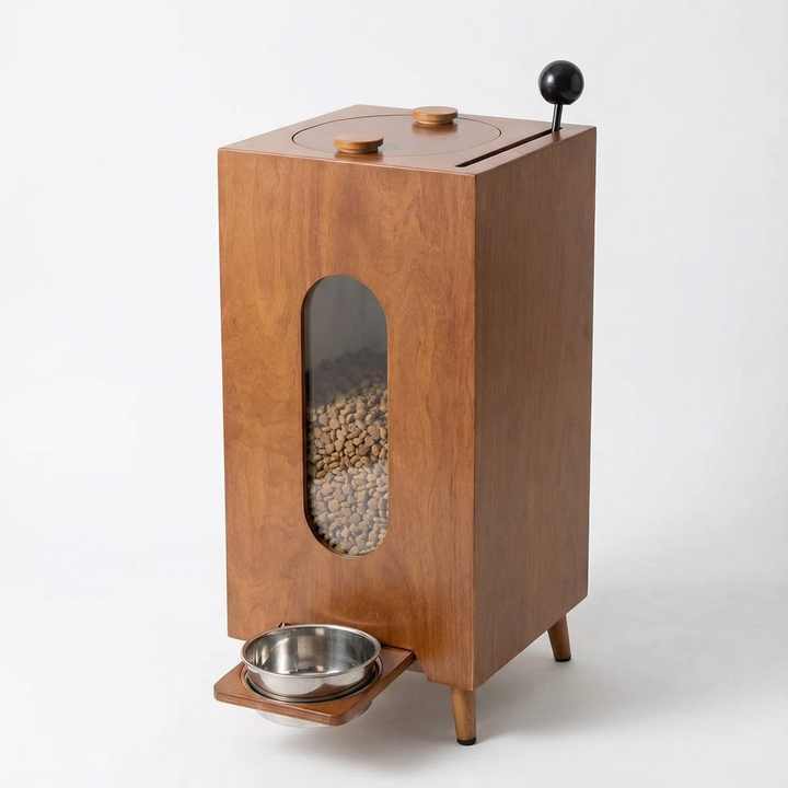 Distributeur de nourriture pour animaux de grande capacité en bois