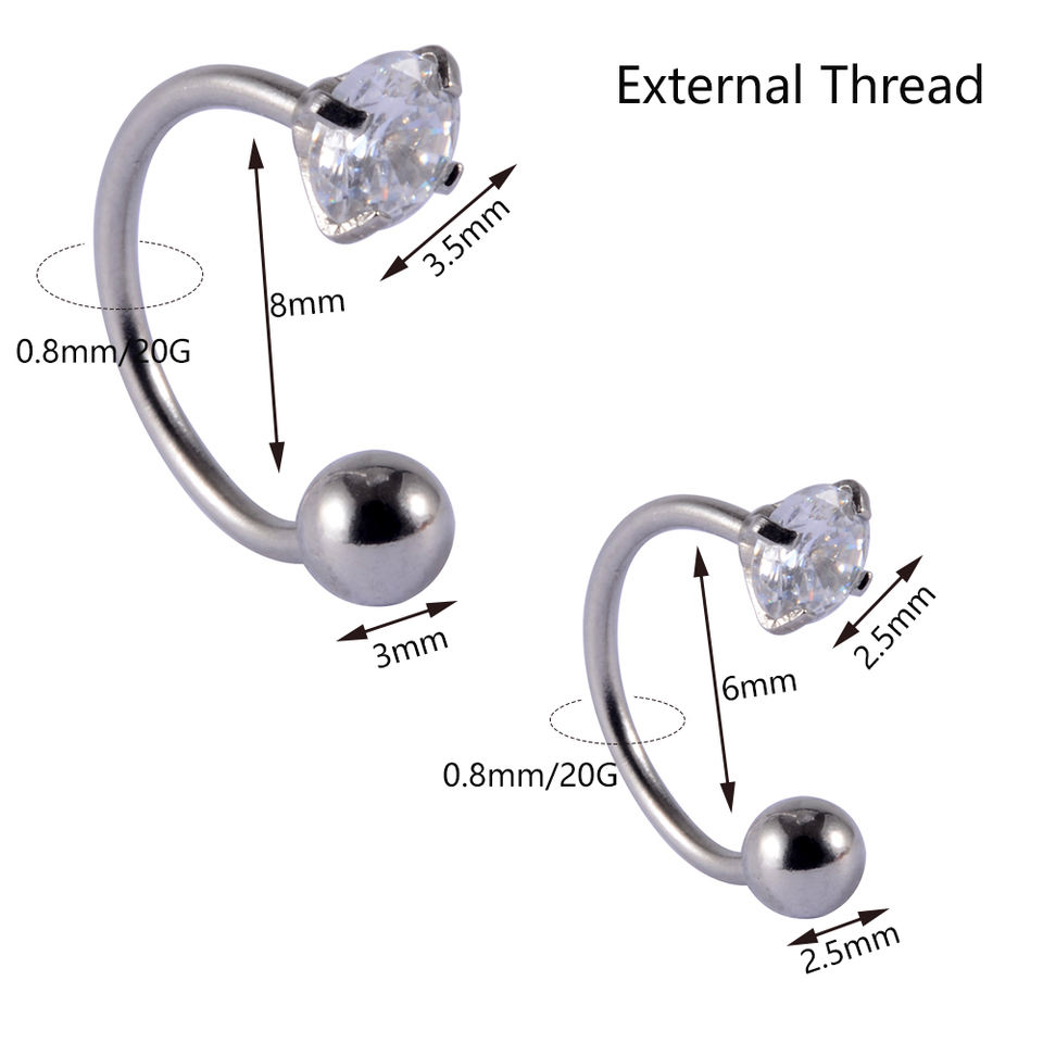 Nouveau design clous d'oreille en acier inoxydable fer à cheval Piercing Zircon Labret clous à lèvres oreille Cartilage Targus Daith Piercing bijoux 20G