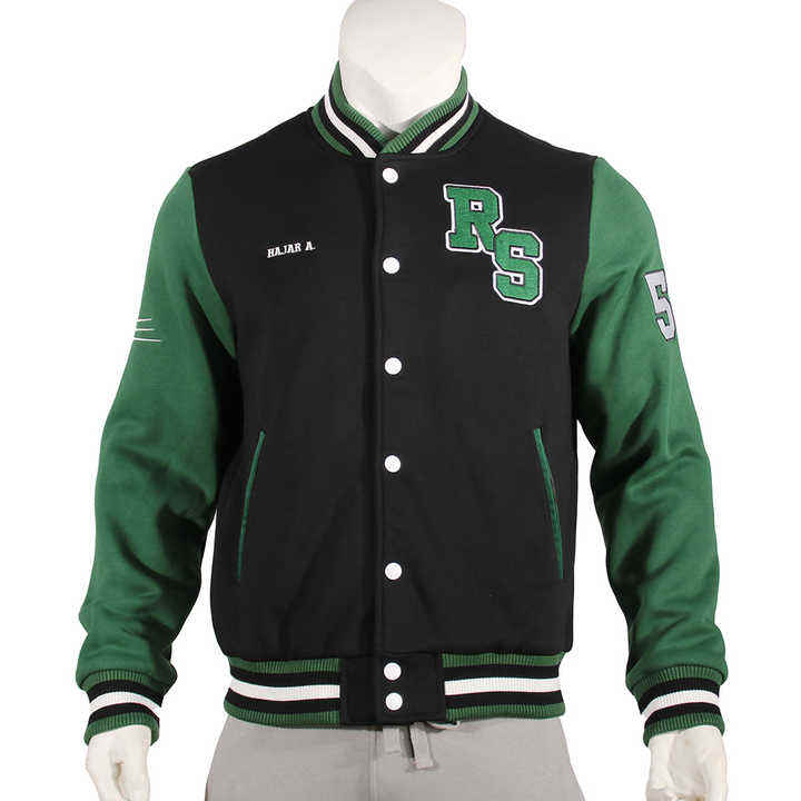 Nouveau design street green pilot blouson aviateur avec patchs chenille chic broderie graffiti letterman varsity vestes