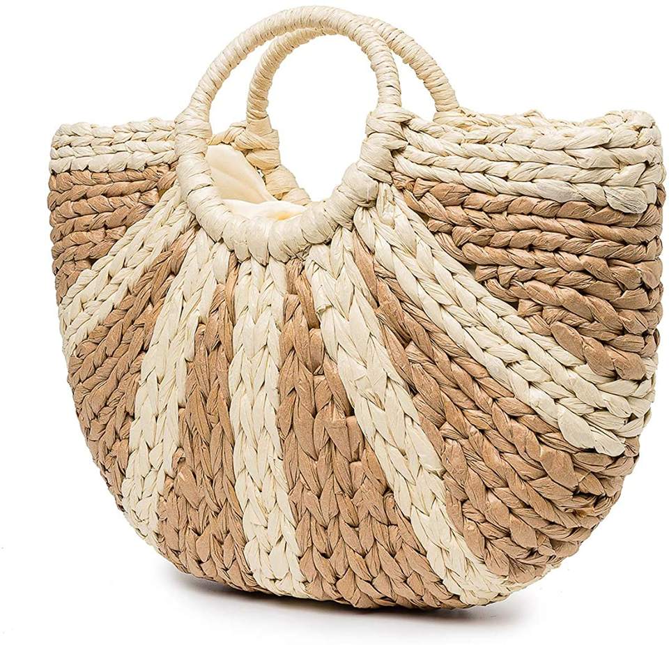 New Design Striped Beige and White Big Size Customizable Tote Straw Bag Basic Water Hyacinth Handbag