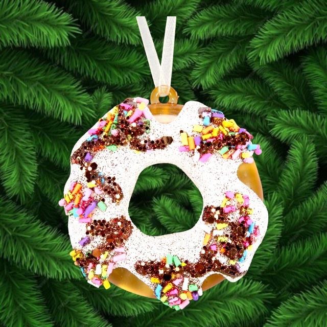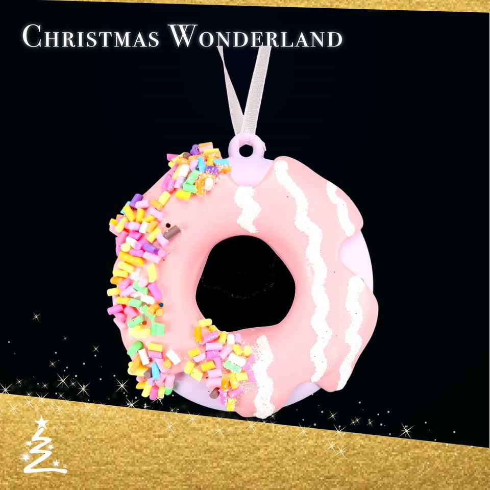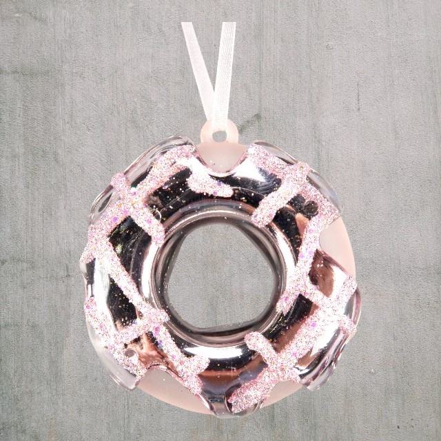 Nouvelle conception de style populaire pour la décoration de Noël et du Nouvel An, macaron violet rose peint en acrylique, ornement de bonbons en forme de beignets