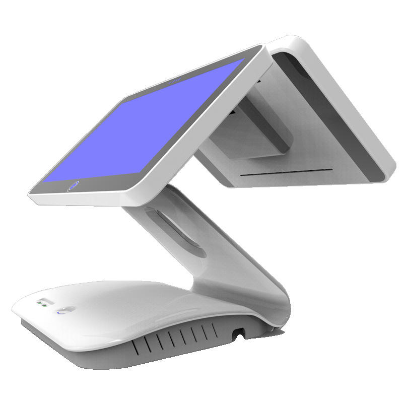 Nouvelle conception de caisse enregistreuse de supermarché à double écran, machine POS avec processeur Intel Core I3, système d'exploitation Android, boîtier métallique