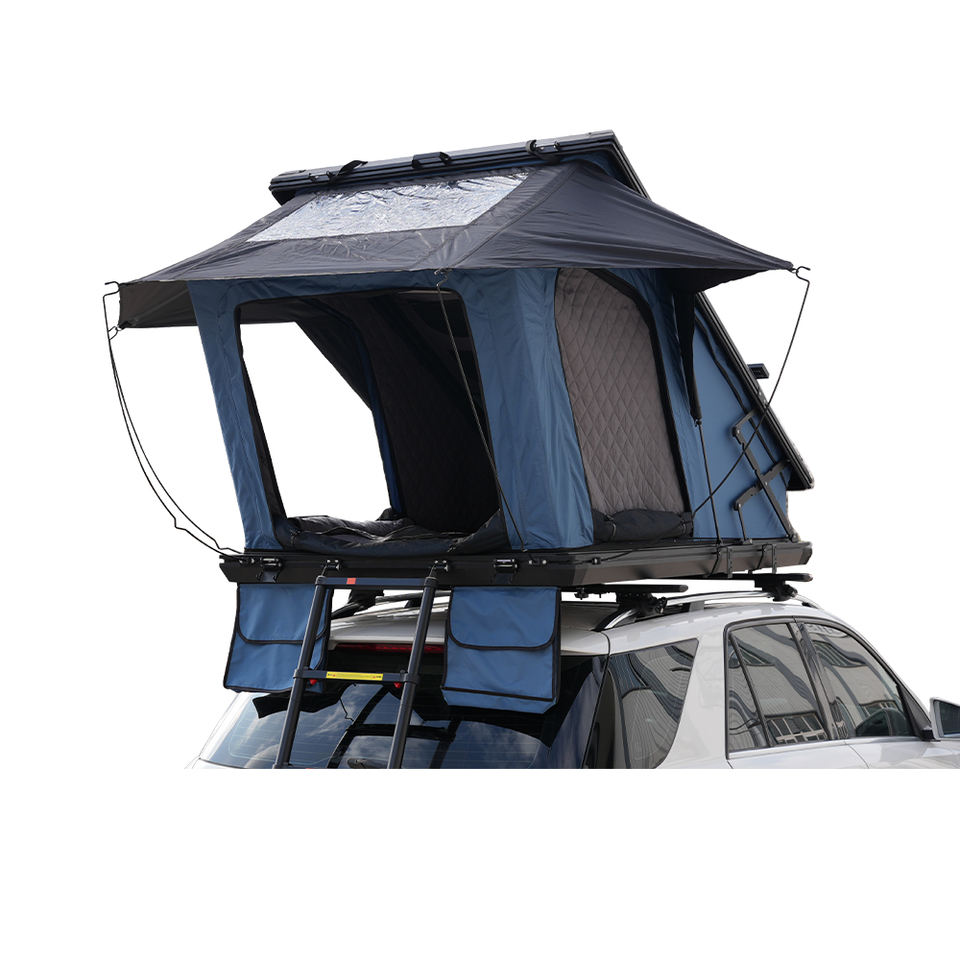 Nouvelle conception de tente de toit pour SUV, tente de toit pour voiture tout-terrain, tente de toit triangulaire en aluminium avec fenêtre