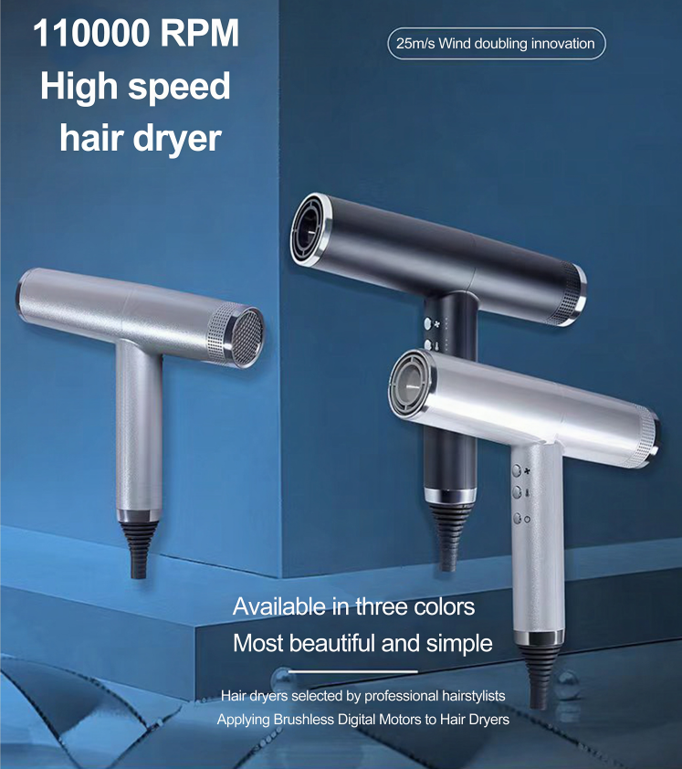Nouveau design de sèche-cheveux de salon en forme de T super fort flux d'air fonction de nettoyage automatique inverse sèche-cheveux avec cordon de long mètre