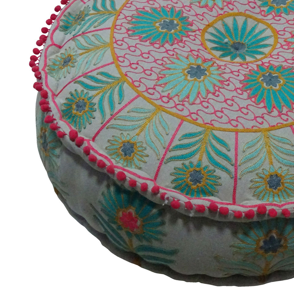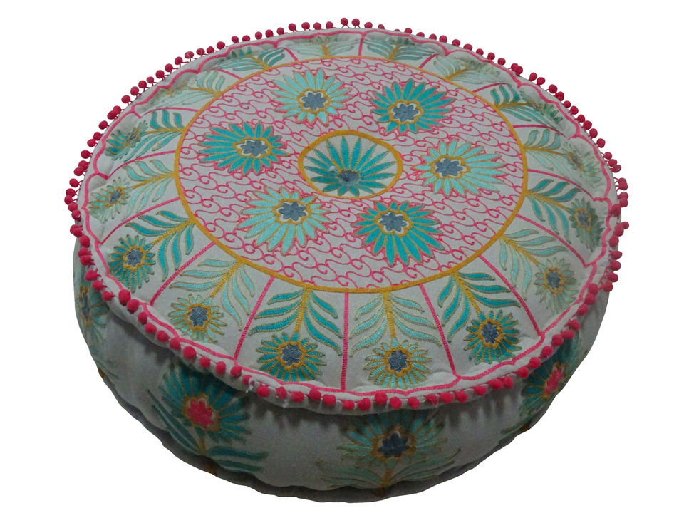Nouveau design tendance, pouf rond indien artisanal en tissu brodé floral, vente en gros, pouf décoratif hippie
