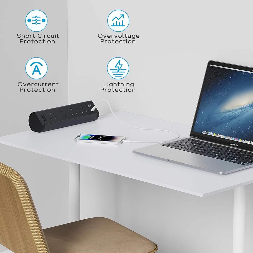 Nouvelle conception, prise électrique britannique à 4 voies avec USB, alliage d'aluminium, fixation par pince de bureau, prise de courant amovible, prise de table